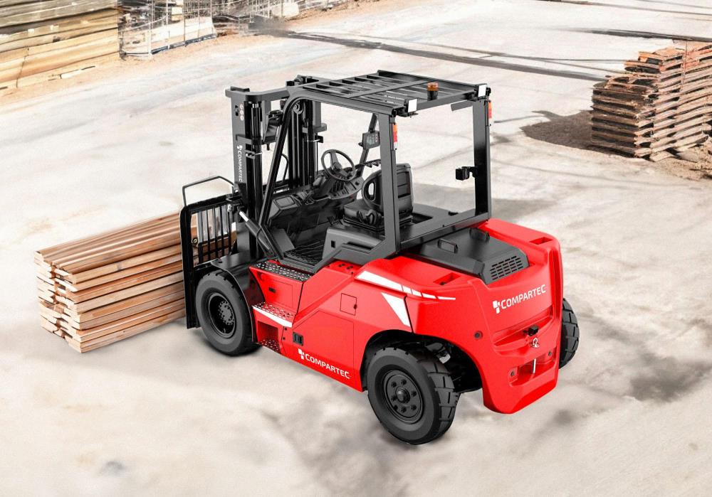Den elektriske gaffeltruck CSX TIER fra COMPARTEC er designet til at håndtere tunge laster op til 7.000 kg med en maksimal løftehøjde på 4.800 mm. Udstyret med en 80 V lithium-ion batteri (820 Ah) og en kompakt konstruktion, er denne gaffeltruck ideel til både indendørs og udendørs brug, selv i trange arbejdsområder.