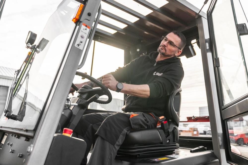 Førerkomforten er i top med en fuldt lukket kabine udstyret med varme, hvilket sikrer behagelige arbejdsforhold under alle vejrforhold. Den ergonomiske udformning og intuitive betjening reducerer førerens træthed og øger sikkerheden på arbejdspladsen.