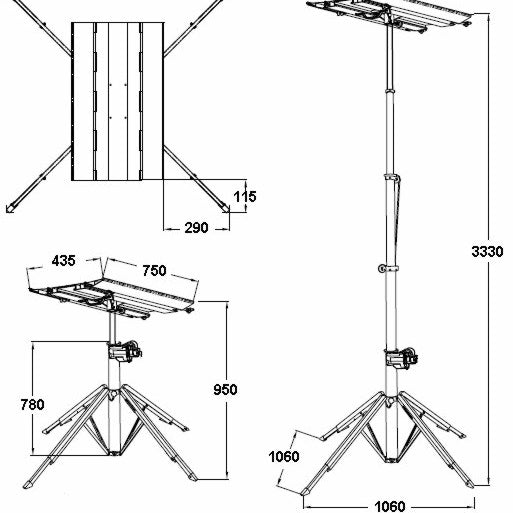 Takket være de justerbare stativfødder står liften sikkert – også på ujævnt underlag eller trapper. Ideel til montageopgaver i messeopbygning eller på byggepladser – overalt, hvor tunge laster skal monteres sikkert over hovedhøjde.