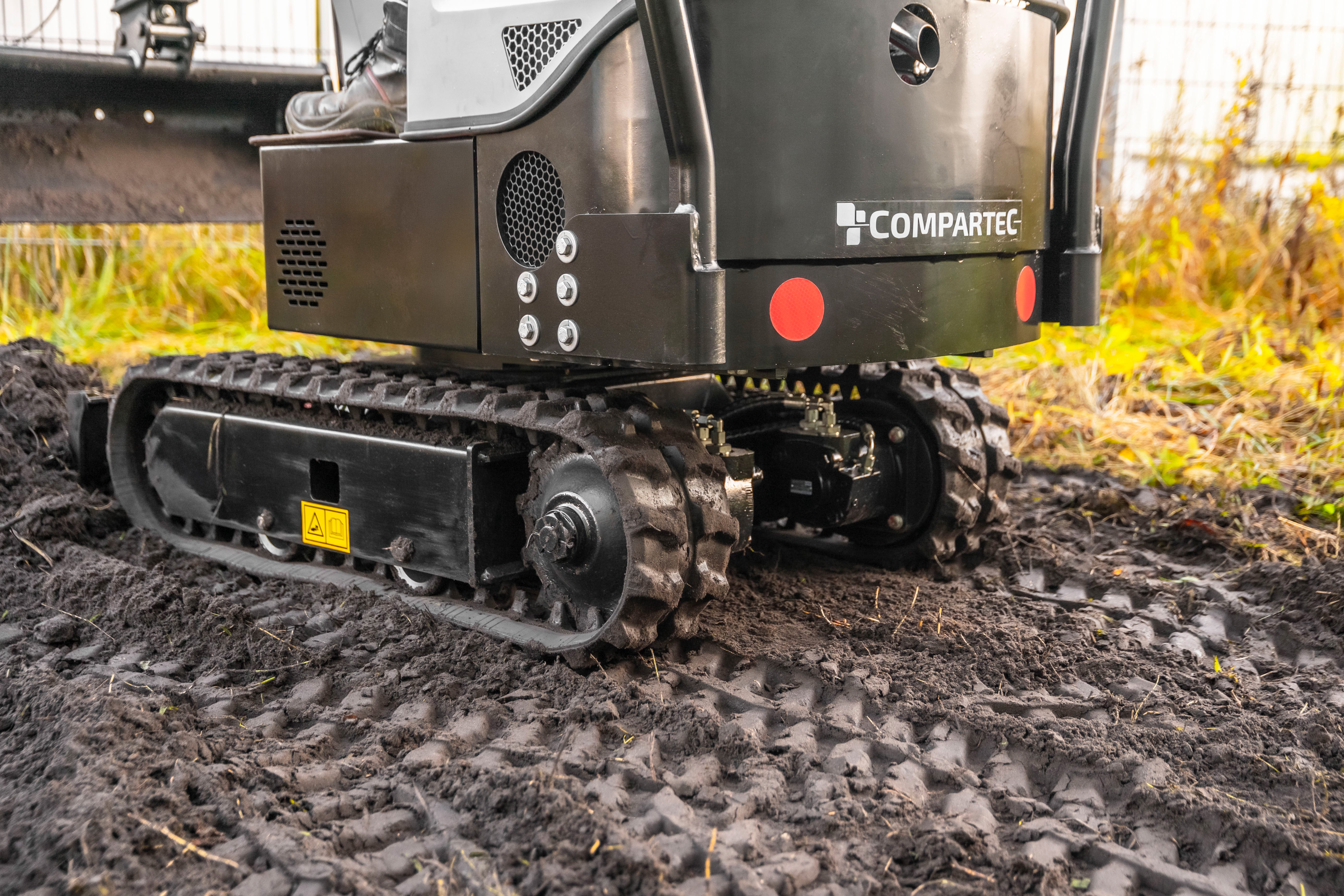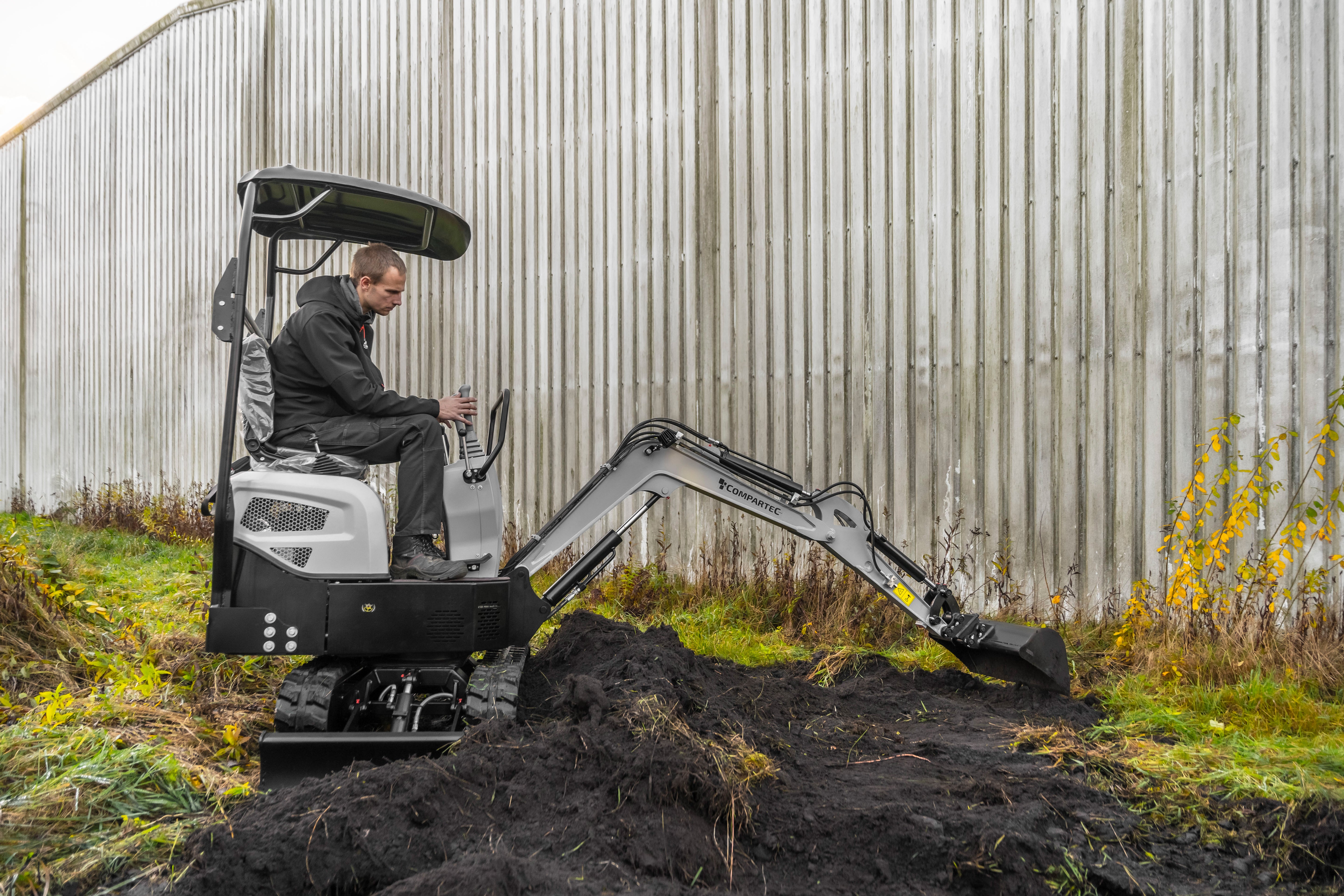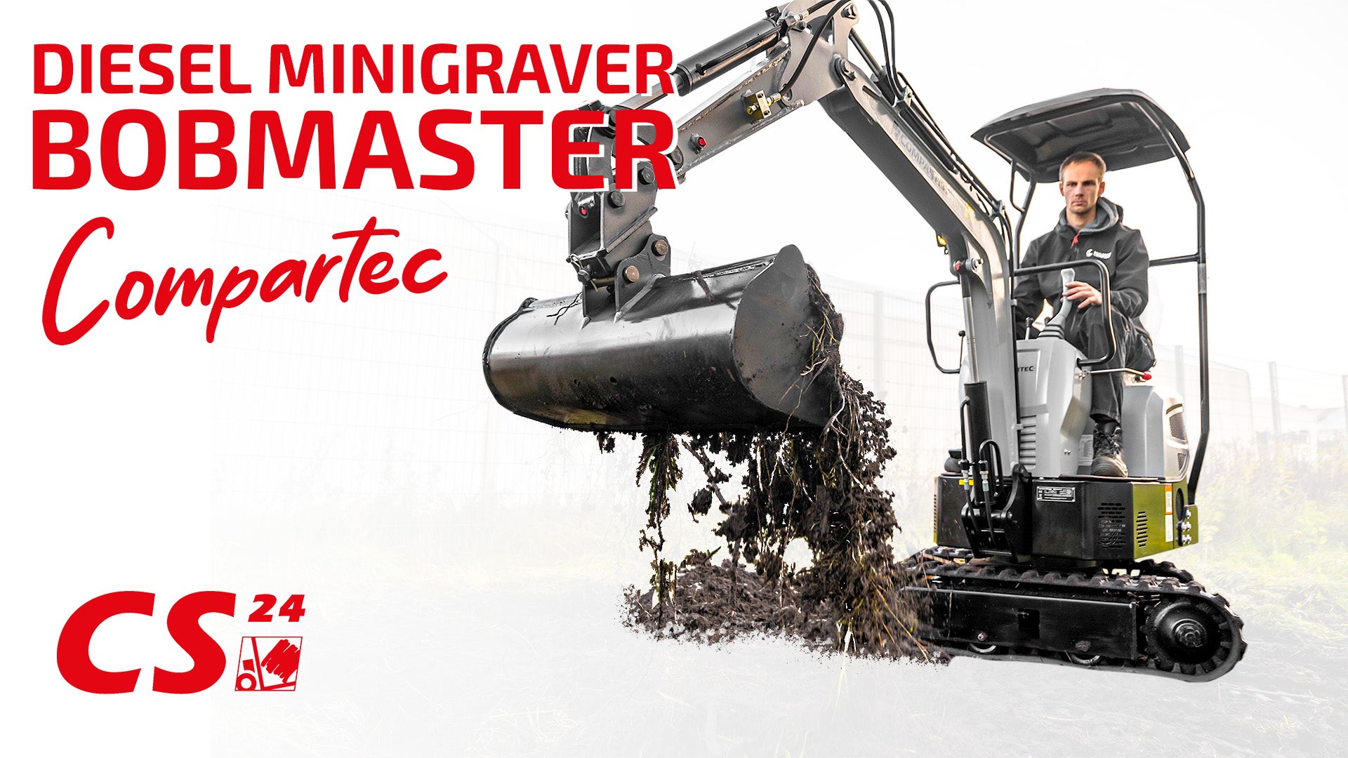 Compartec Bobmaster Basic minigraver er en kompakt og effektiv løsning til mindre graveopgaver i haver og på små byggepladser. Med en vægt på kun 850 kg og en bredde på 840 mm kan denne minigraver nemt navigere gennem smalle passager og porte, hvilket gør den ideel til trange arbejdsområder.