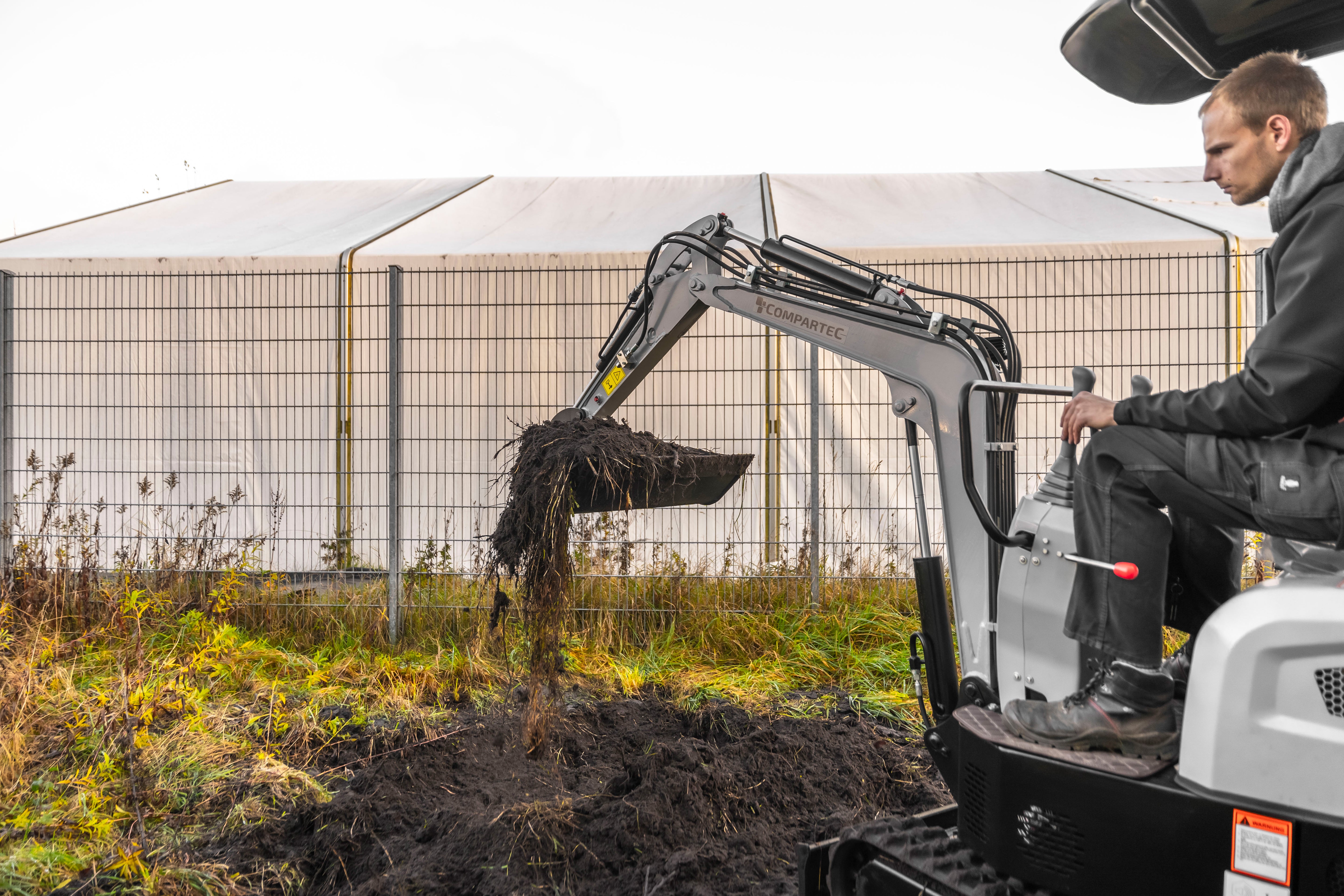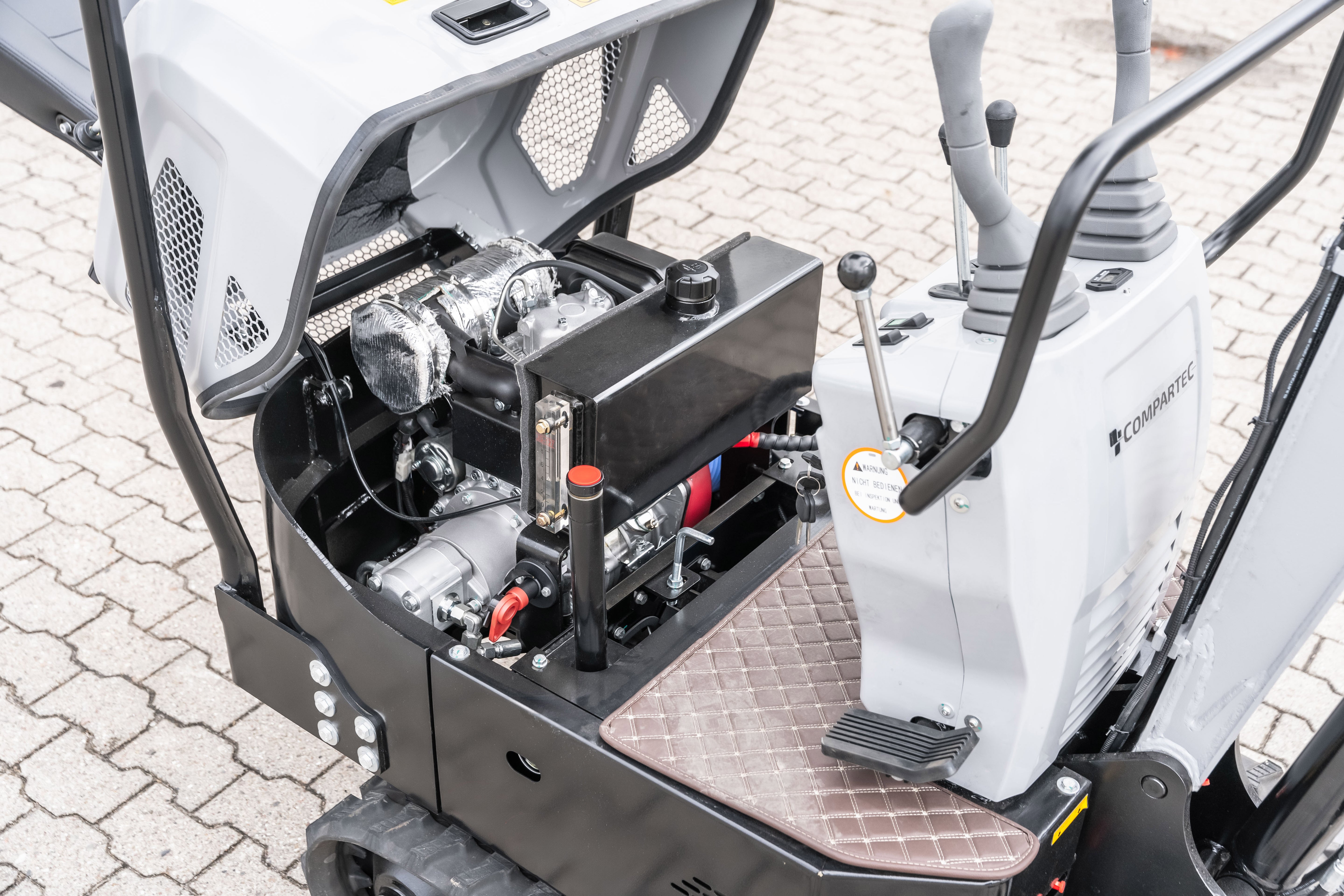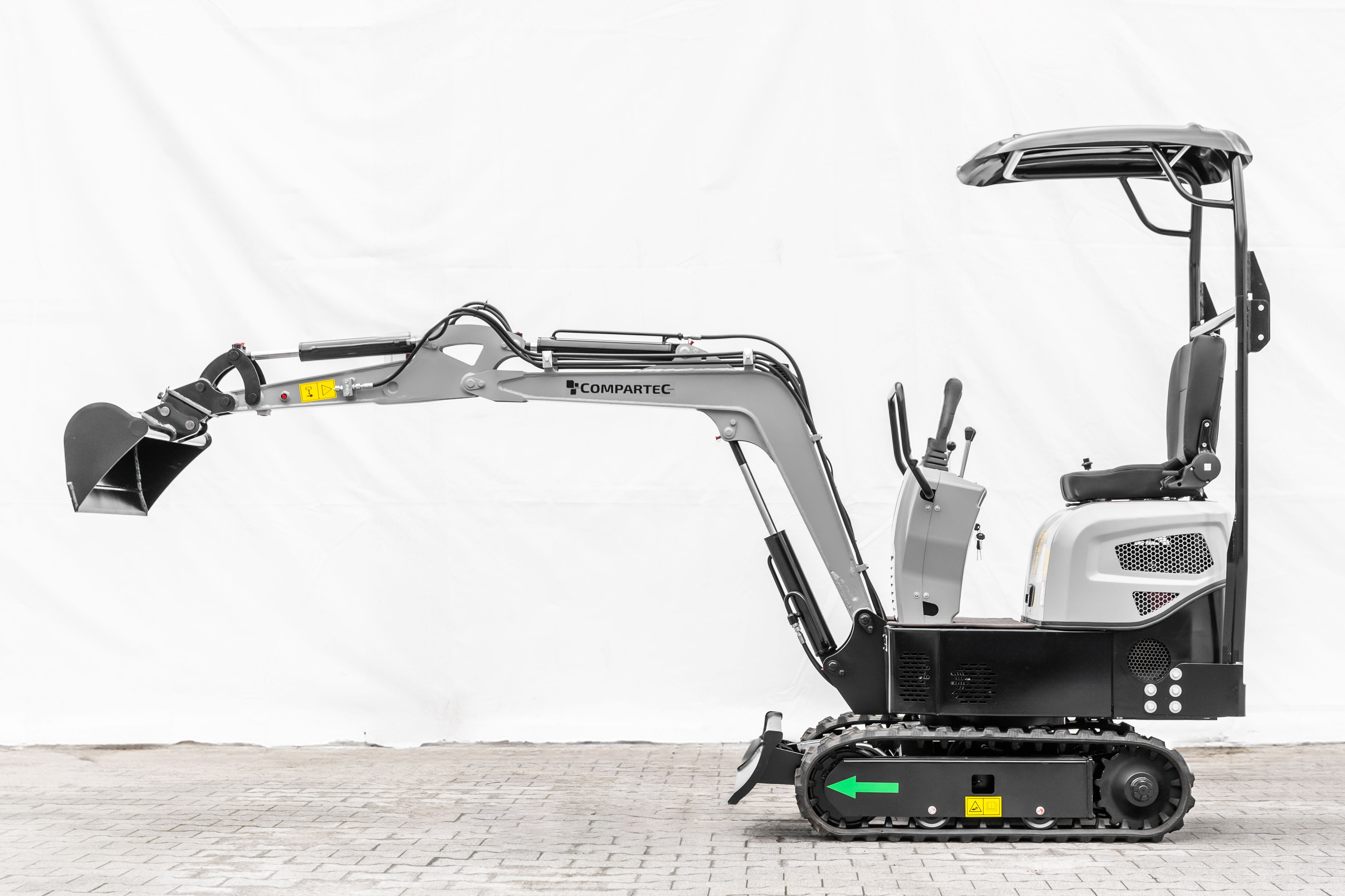 Compartec Bobmaster Basic minigraver er en kompakt og effektiv løsning til mindre graveopgaver i haver og på små byggepladser. Med en vægt på kun 850 kg og en bredde på 840 mm kan denne minigraver nemt navigere gennem smalle passager og porte, hvilket gør den ideel til trange arbejdsområder.