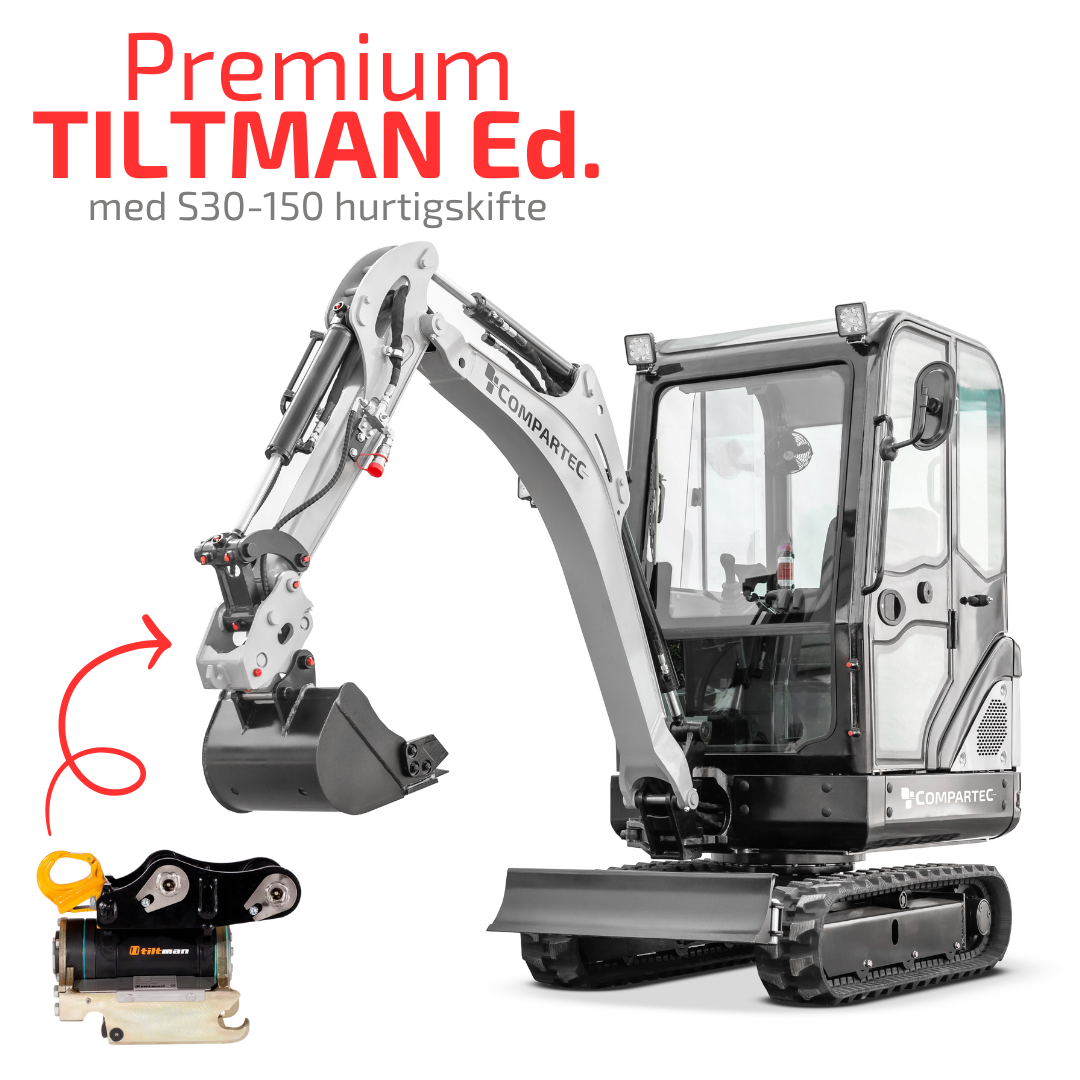 Obs: Leveringstid på Tiltman Edition er 3-4 uger. Skovlsættet er anderledes end det på billederne, idet der ikke er tænder på medfølgende graveskovle, og den mindste skovl er 250 mm, og ikke 200 mm som på billederne.