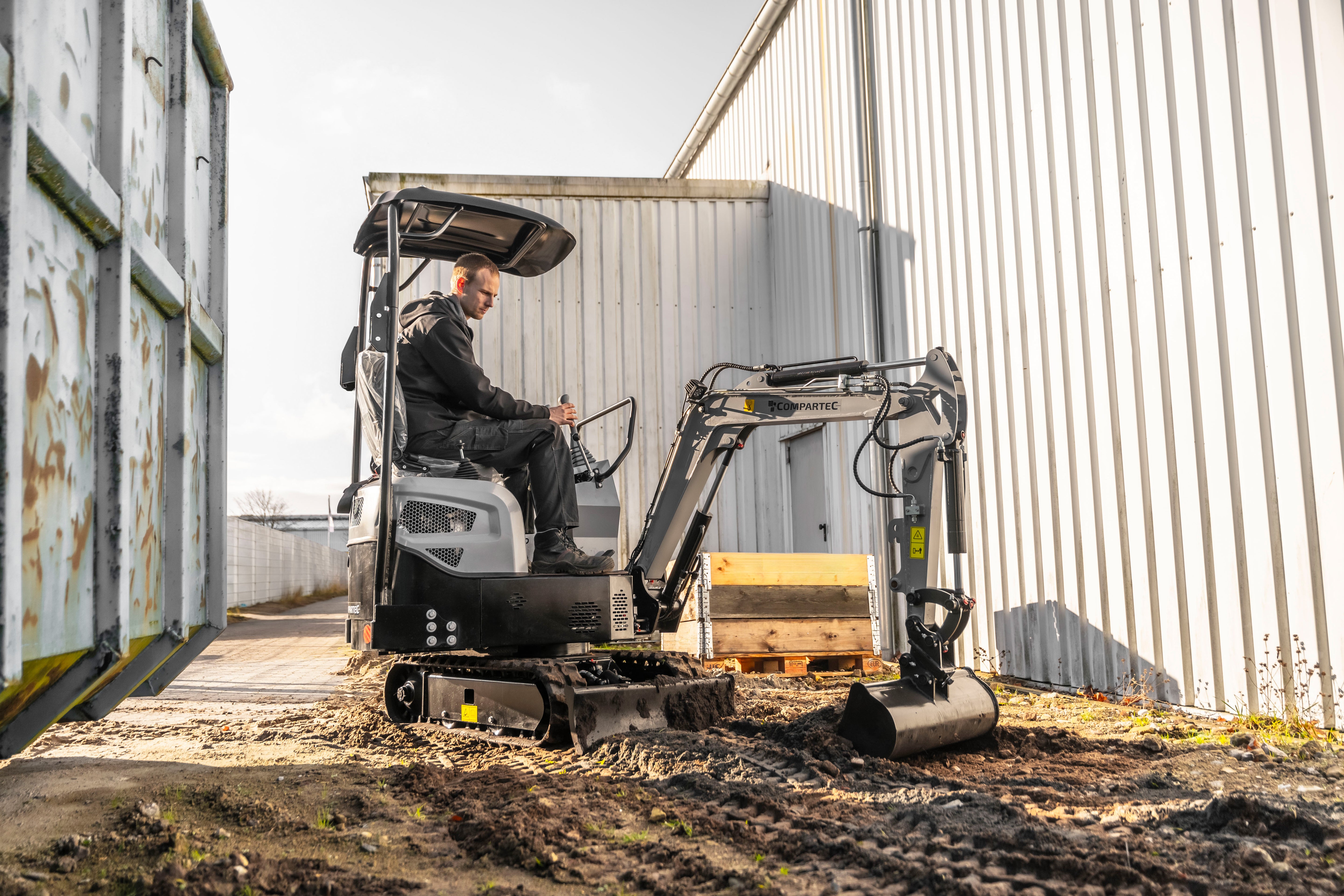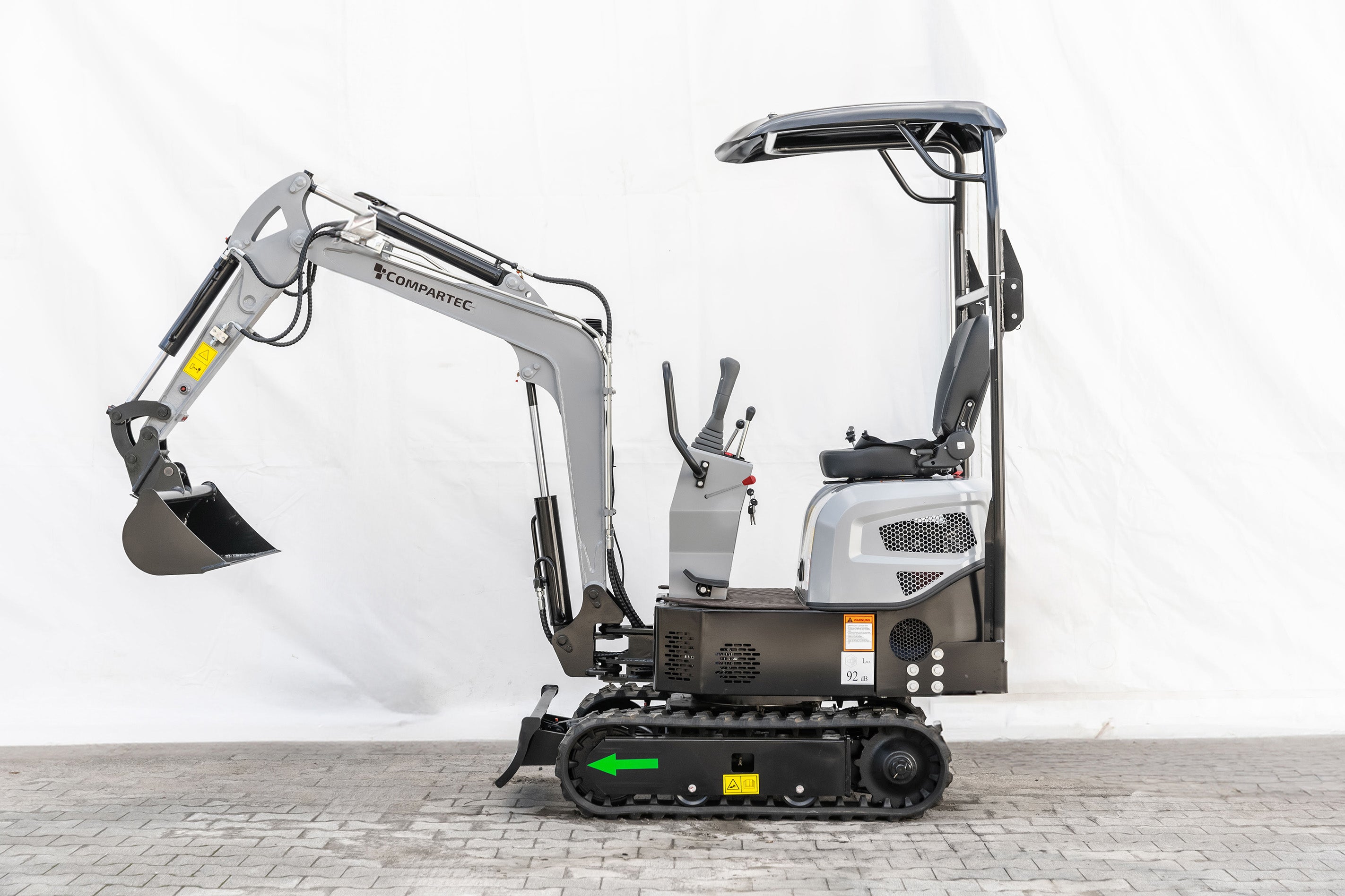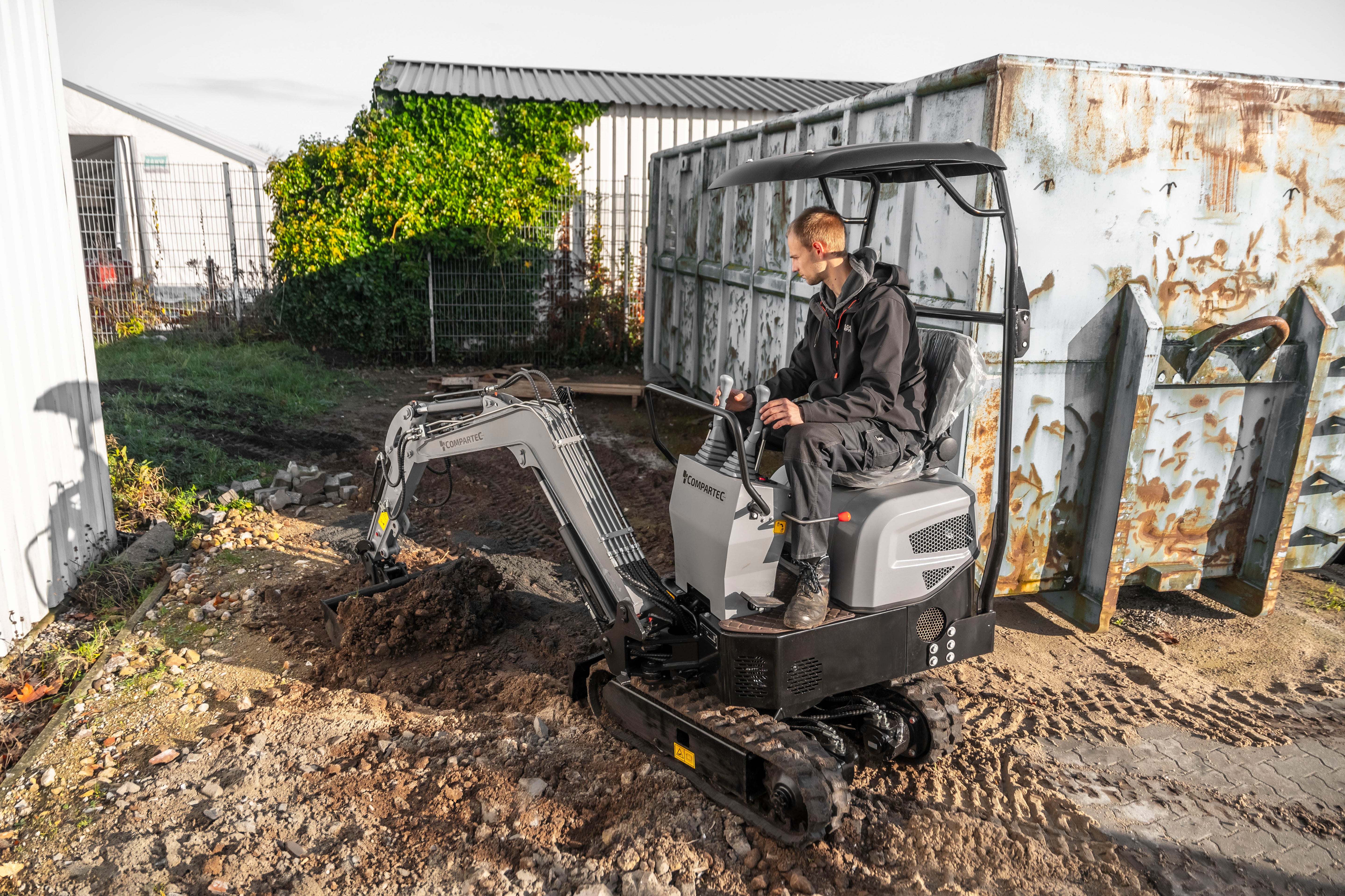 Compartec Bobmaster Pro er en kompakt og kraftfuld dieselminigraver, ideel til arbejde på trange byggepladser og i haver. Med en vægt på kun 890 kg og en bredde på 840 mm kan den nemt passere smalle passager, hvilket gør den perfekt til opgaver i begrænsede områder. Den er udstyret med en 9,5 hk KOOP® dieselmotor (Euro 5), der leverer pålidelig ydeevne til diverse graveopgaver.