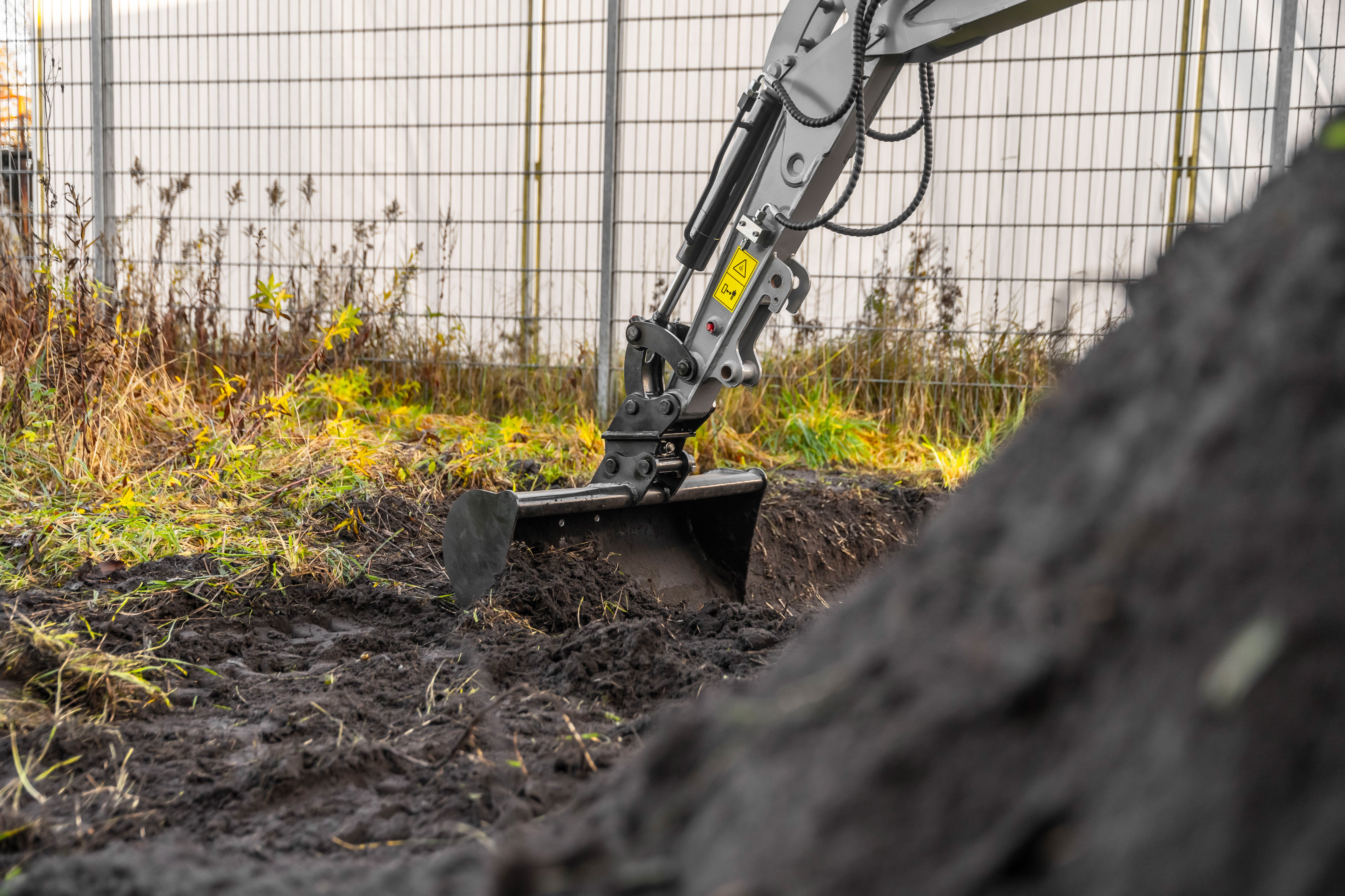 Minigraveren har en drejearm, der muliggør gravning til både højre og venstre, hvilket øger fleksibiliteten på arbejdspladsen. Den maksimale grave- og udgravningsdybde er 1.520 mm, hvilket gør den velegnet til fundamentudgravning, grøftegravning og landskabspleje.
