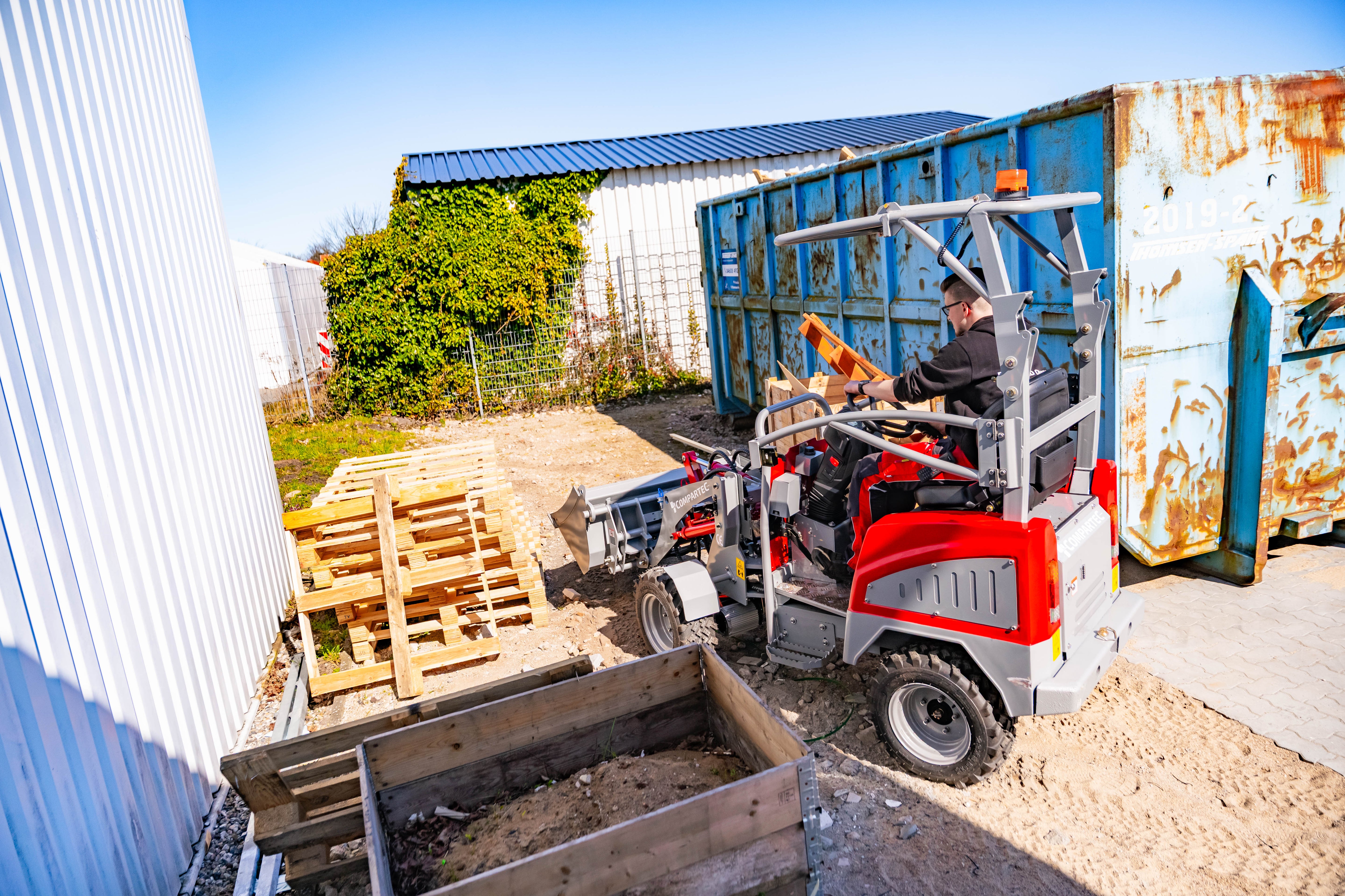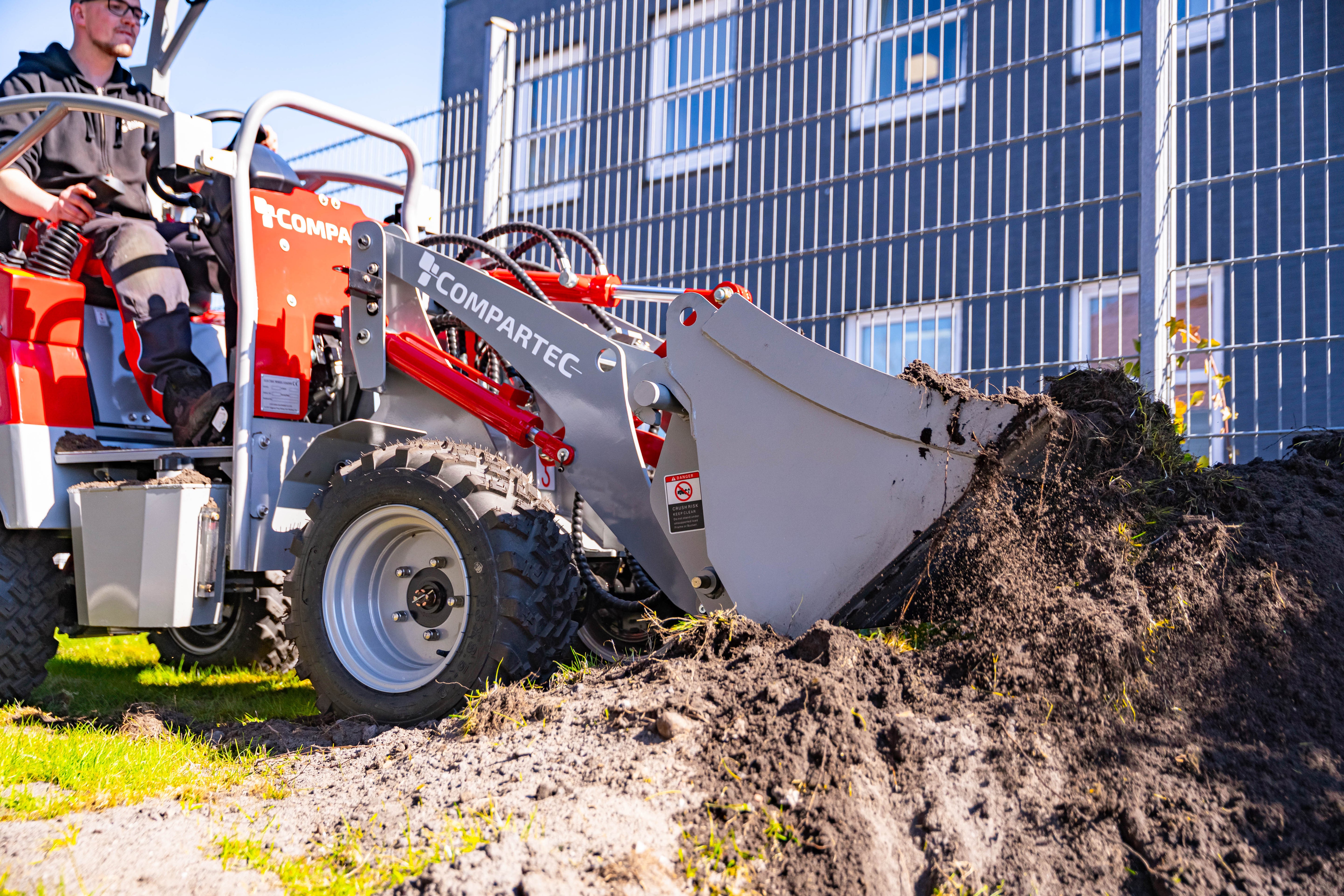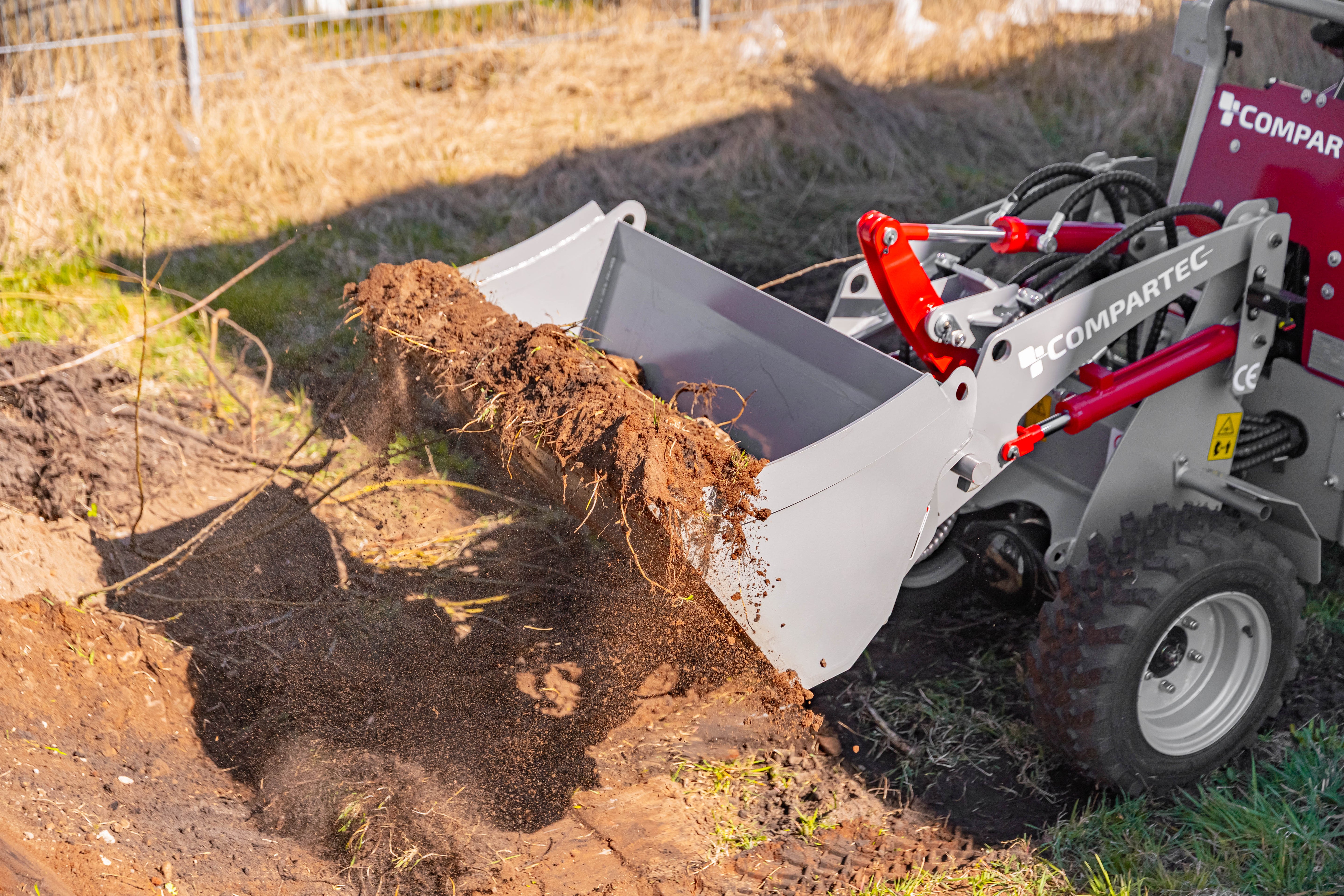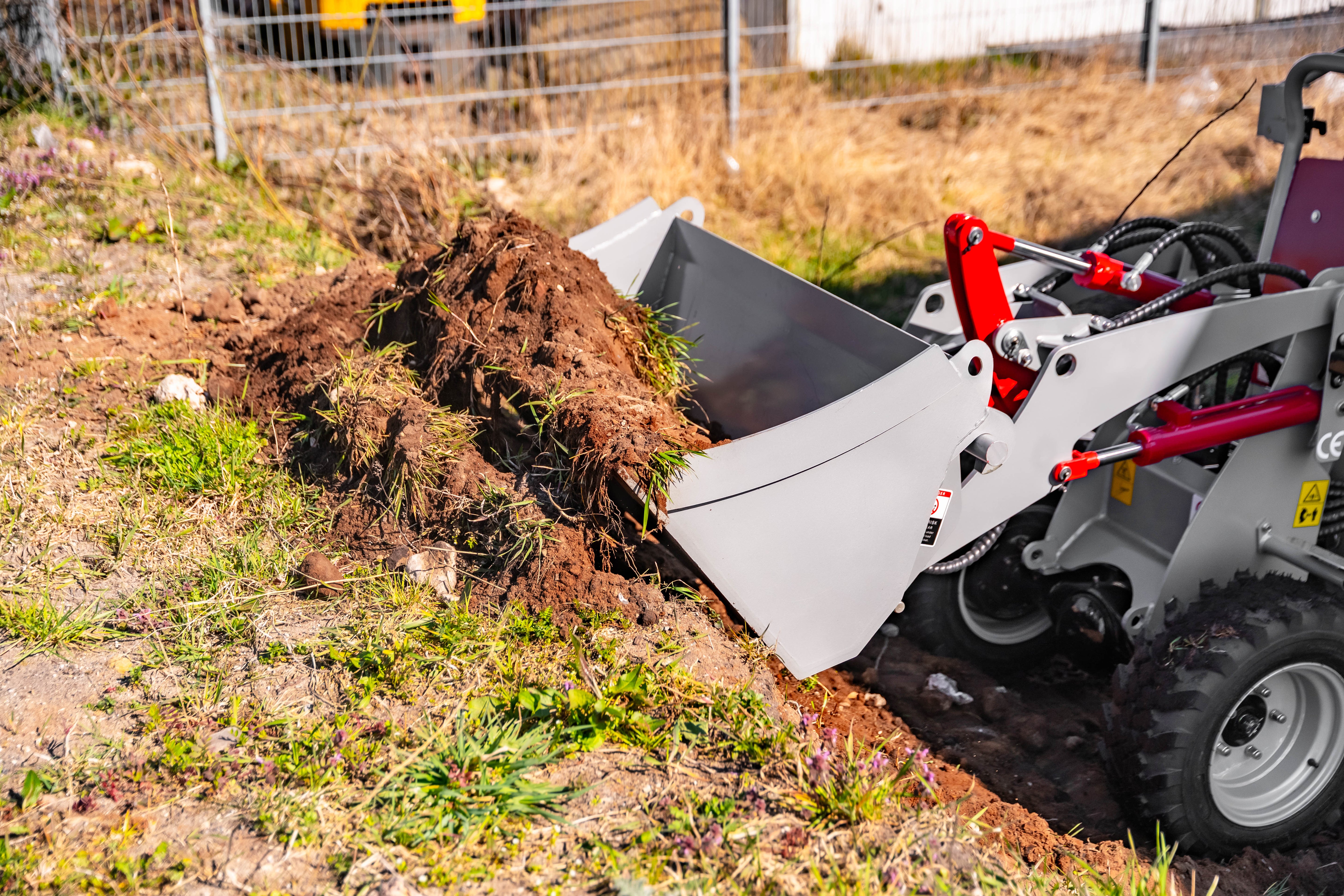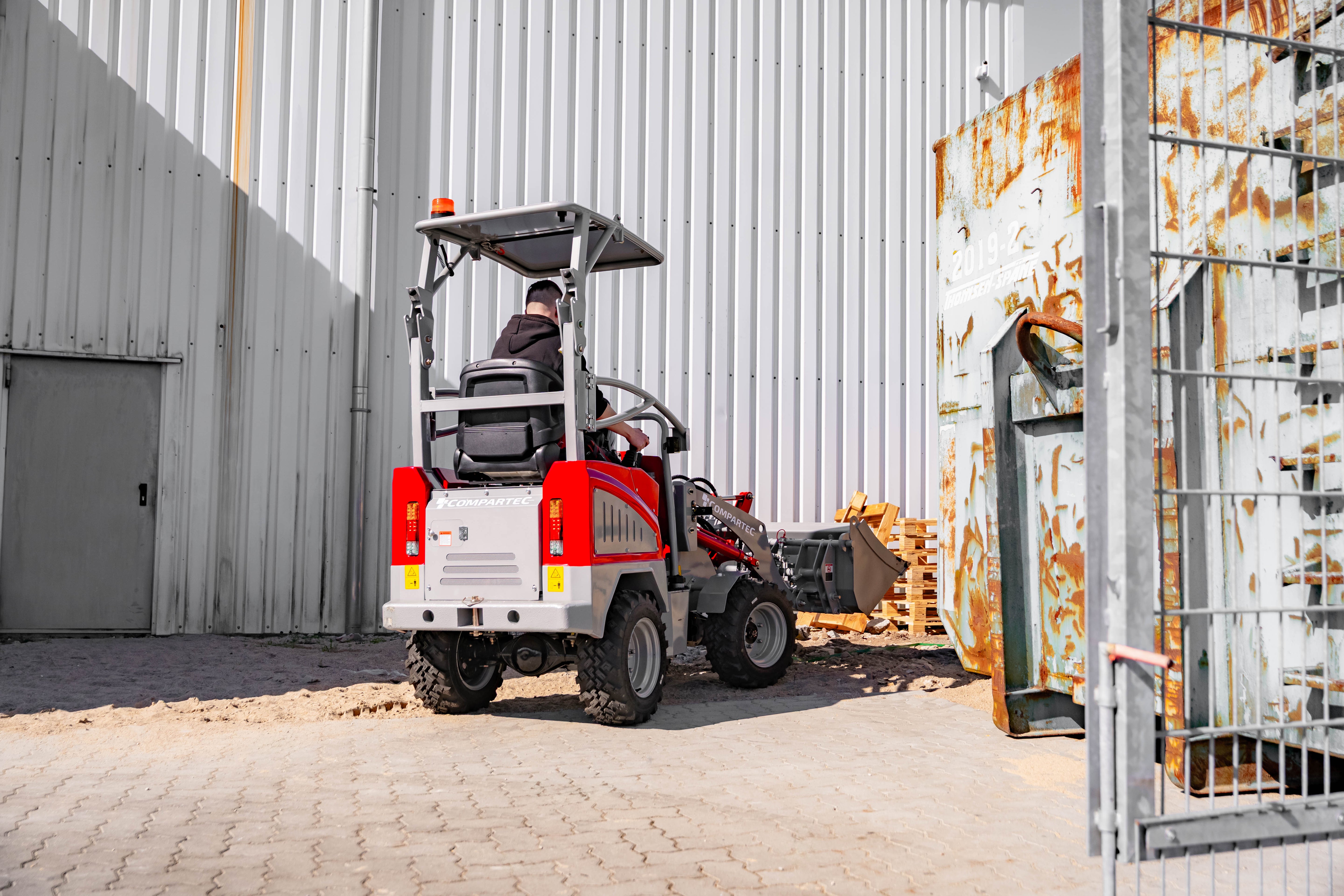 Den robuste konstruktion og det kompakte design med en bredde på 1.050 mm gør det nemt at manøvrere i trange områder. Weidemaster er udstyret med et hurtigskiftesystem, der gør det muligt hurtigt at skifte mellem forskellige redskaber som skovle og pallegafler, hvilket øger maskinens alsidighed. Desuden sikrer de kraftige dæk (29*12.50-15) fremragende trækkraft på forskellige underlag.
