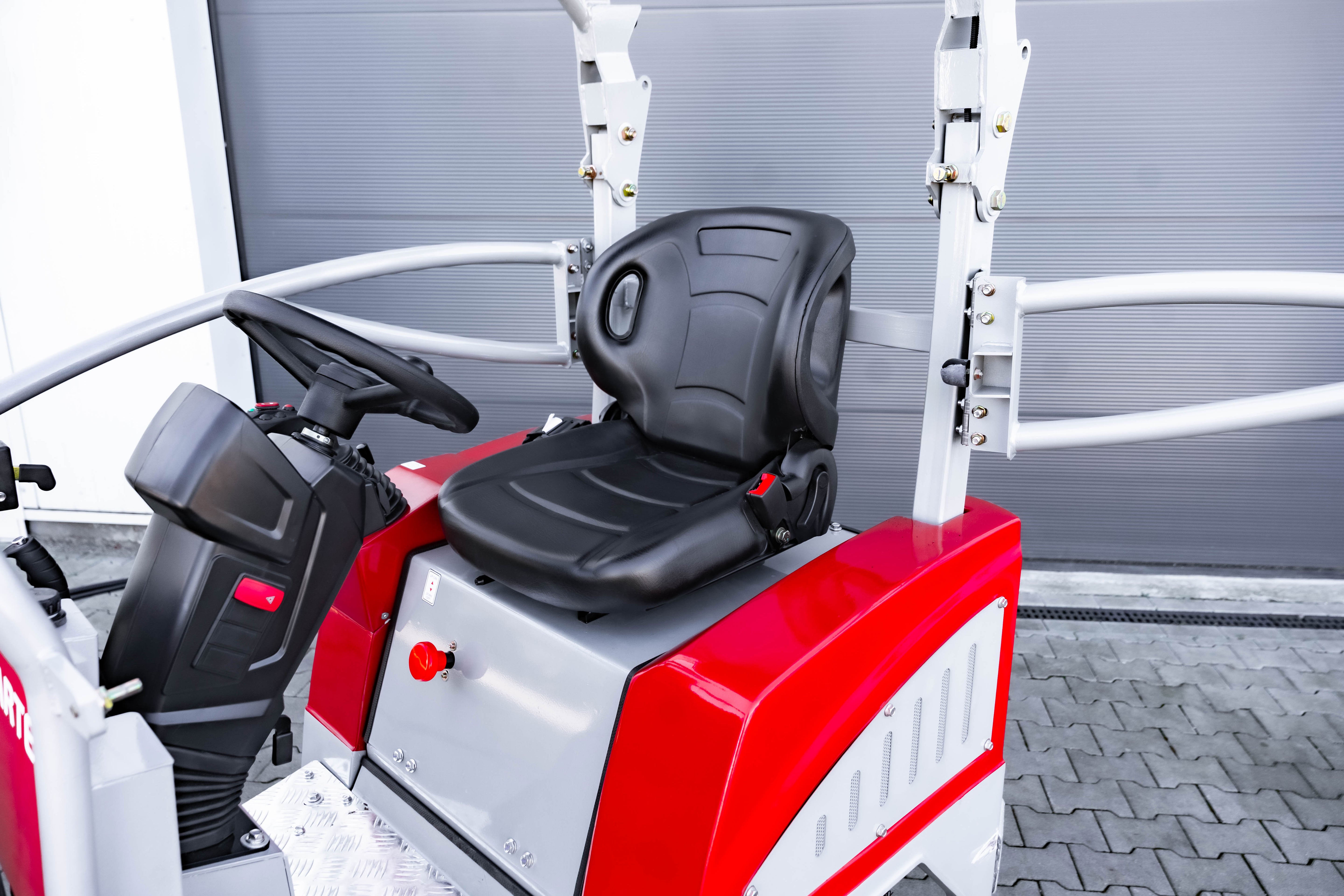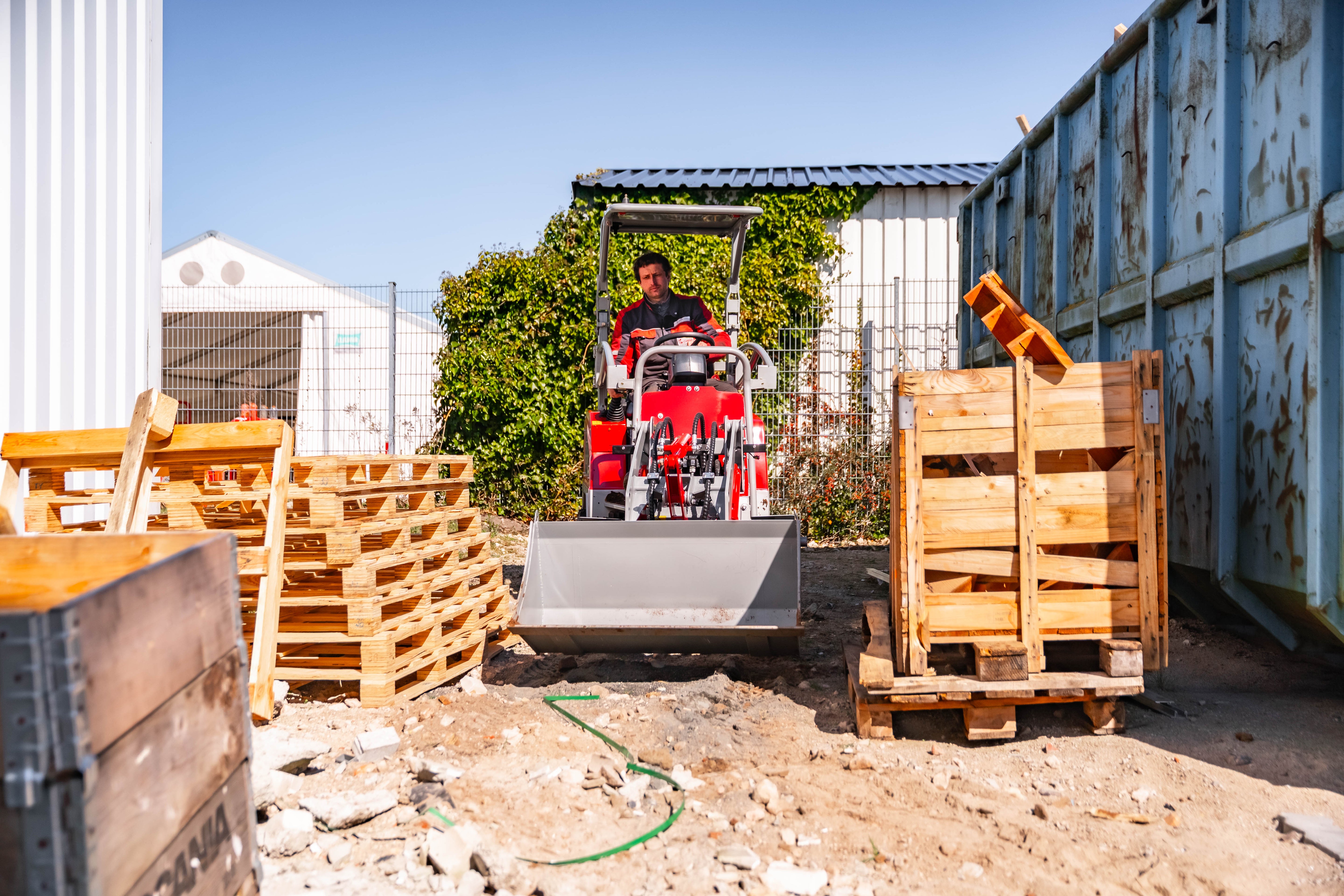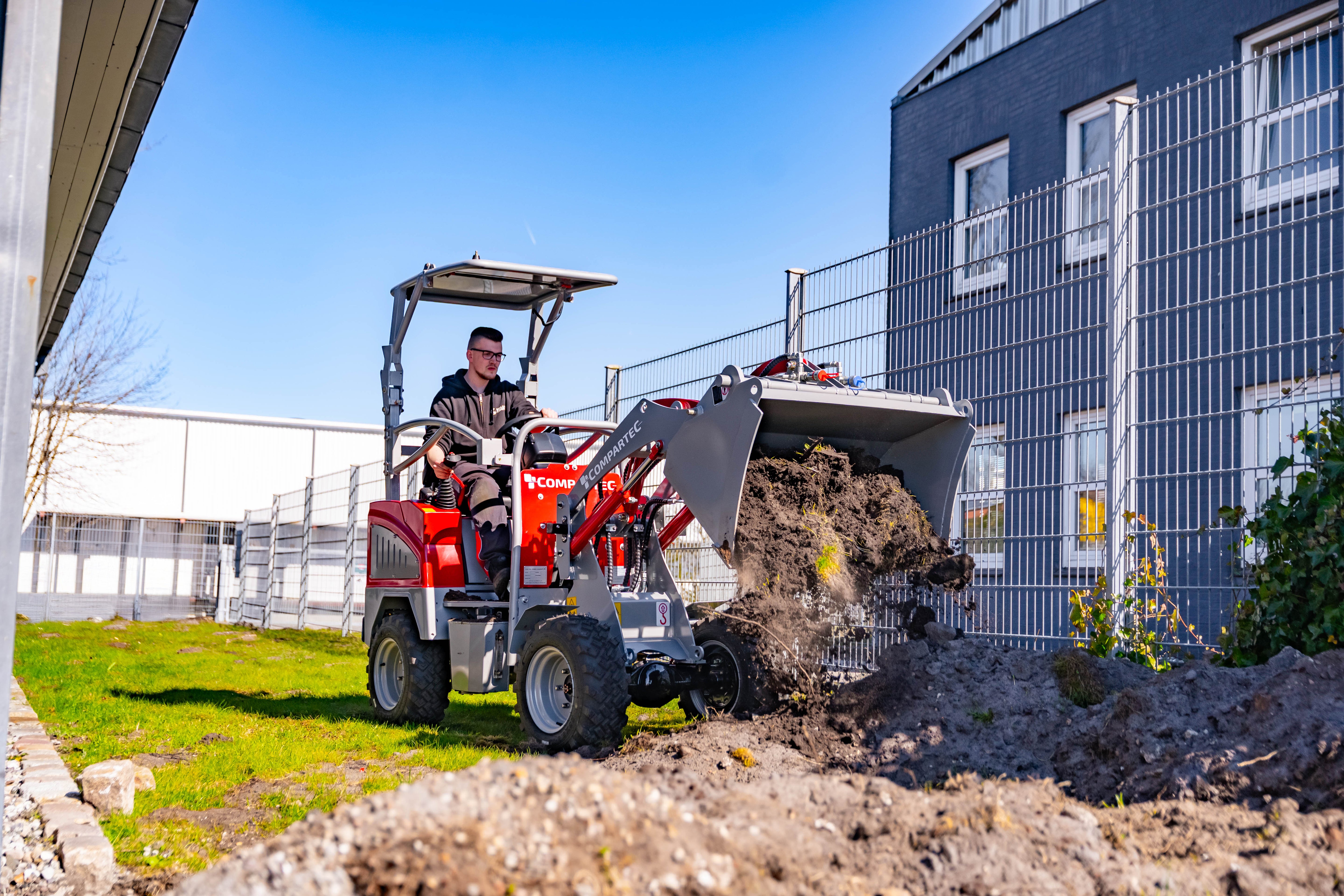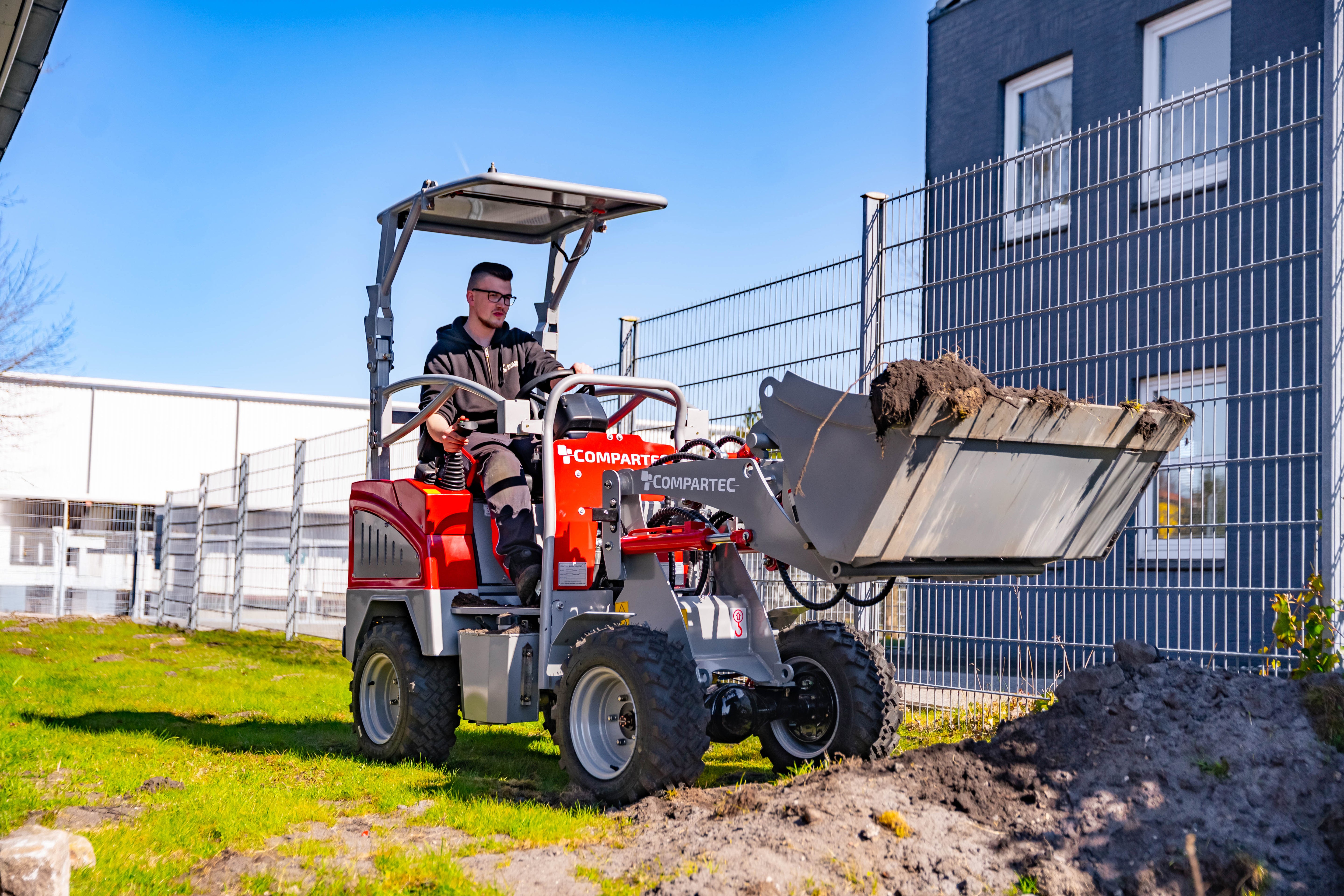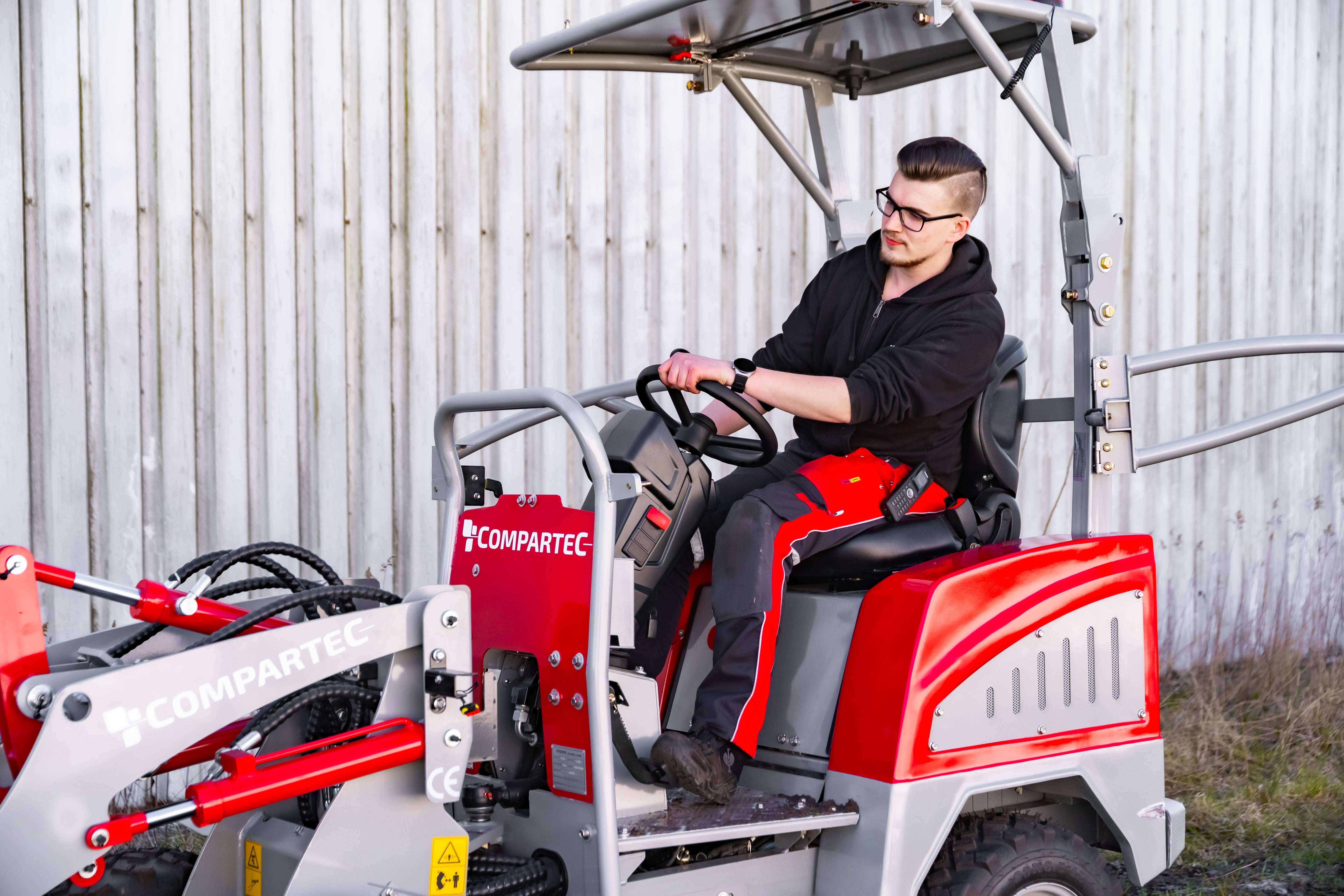 Den robuste konstruktion og det kompakte design med en bredde på 1.050 mm gør det nemt at manøvrere i trange områder. Weidemaster er udstyret med et hurtigskiftesystem, der gør det muligt hurtigt at skifte mellem forskellige redskaber som skovle og pallegafler, hvilket øger maskinens alsidighed. Desuden sikrer de kraftige dæk (29*12.50-15) fremragende trækkraft på forskellige underlag.