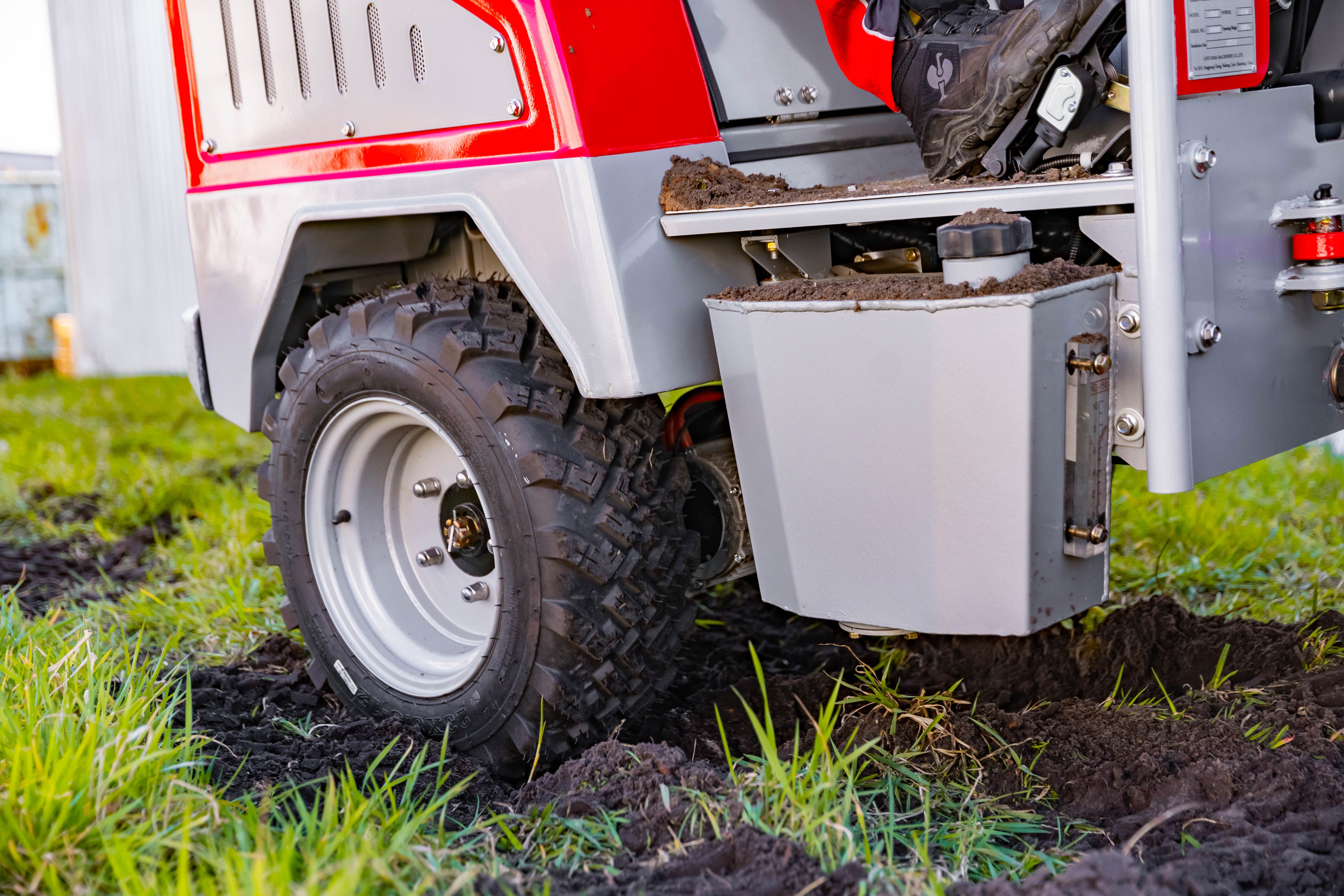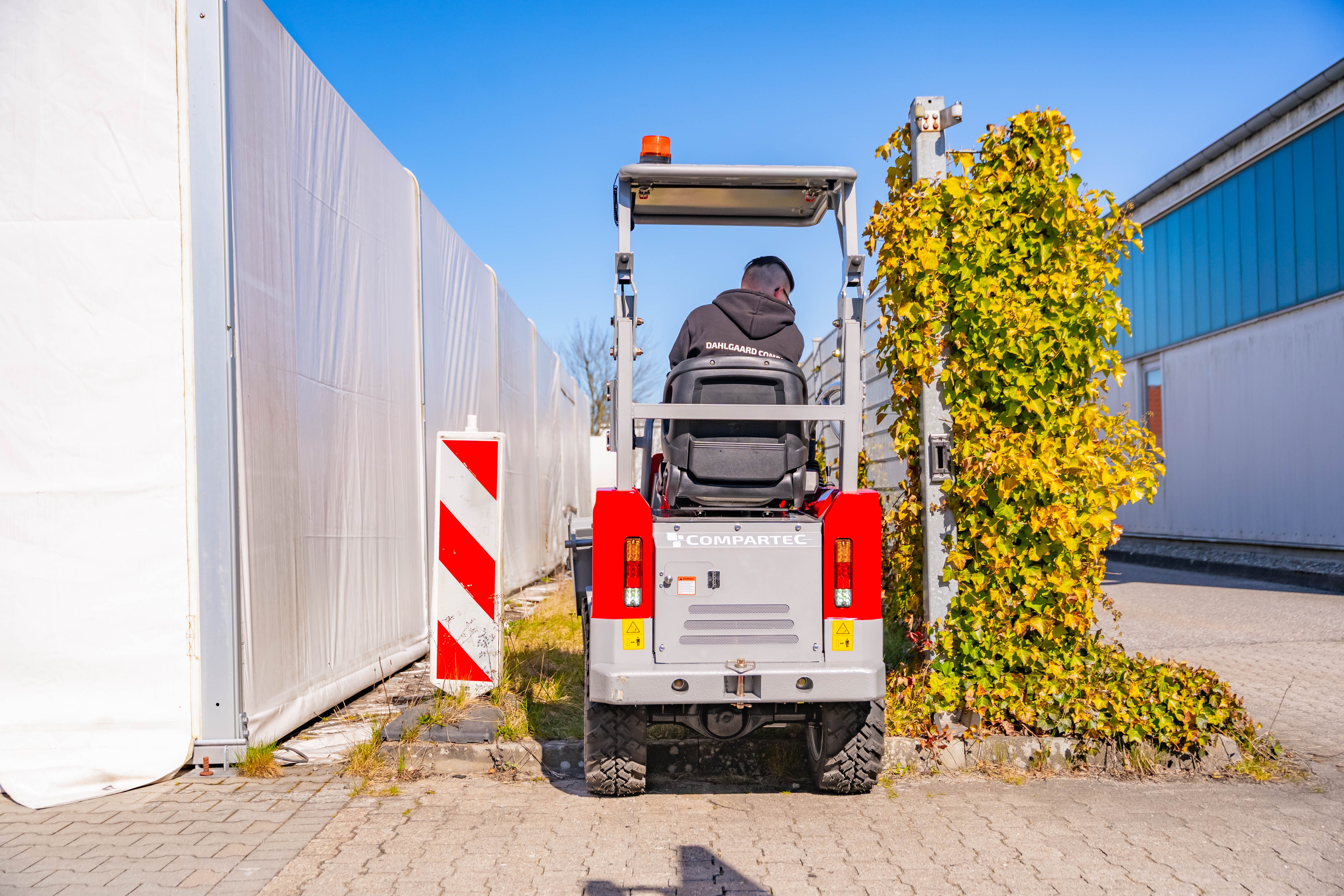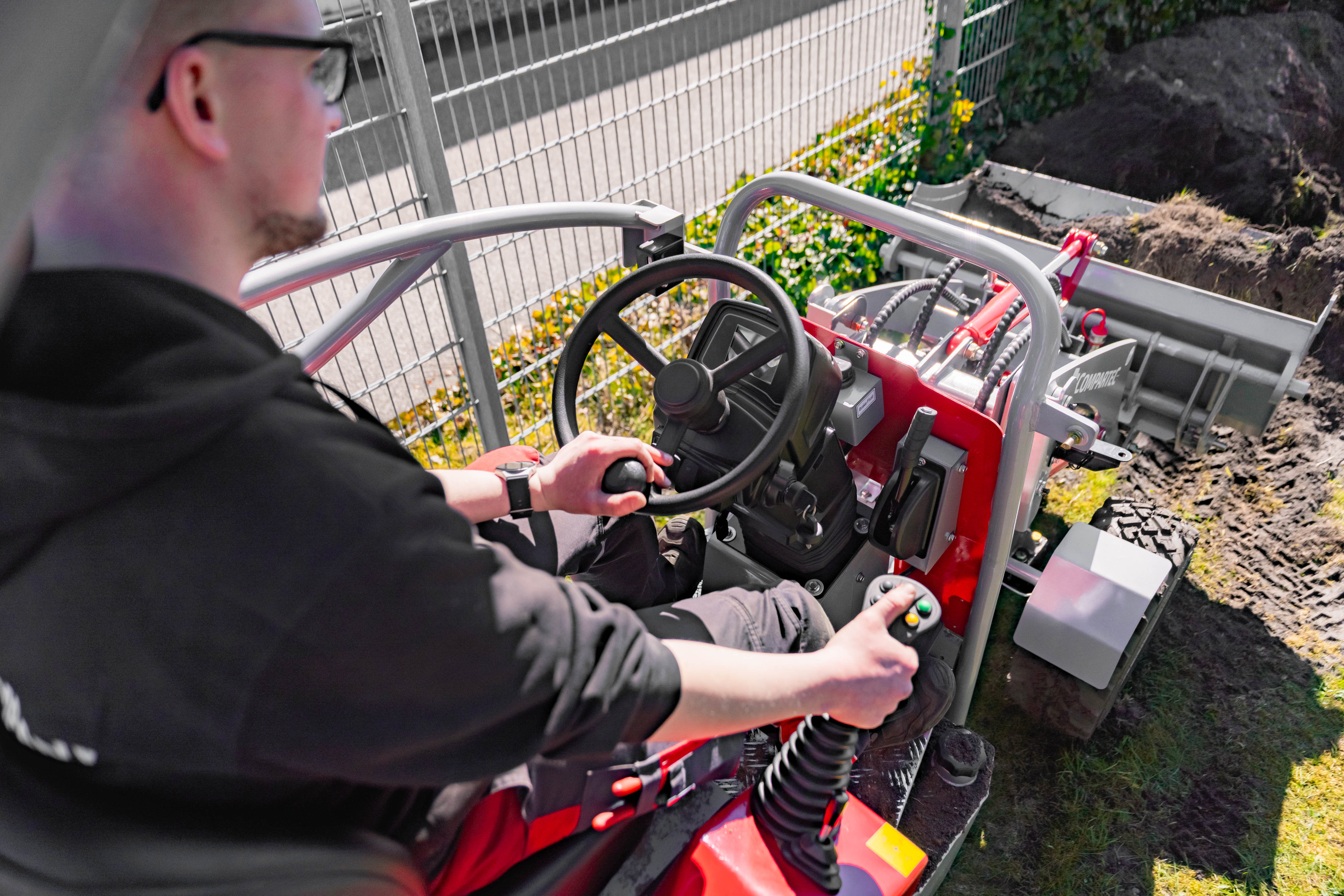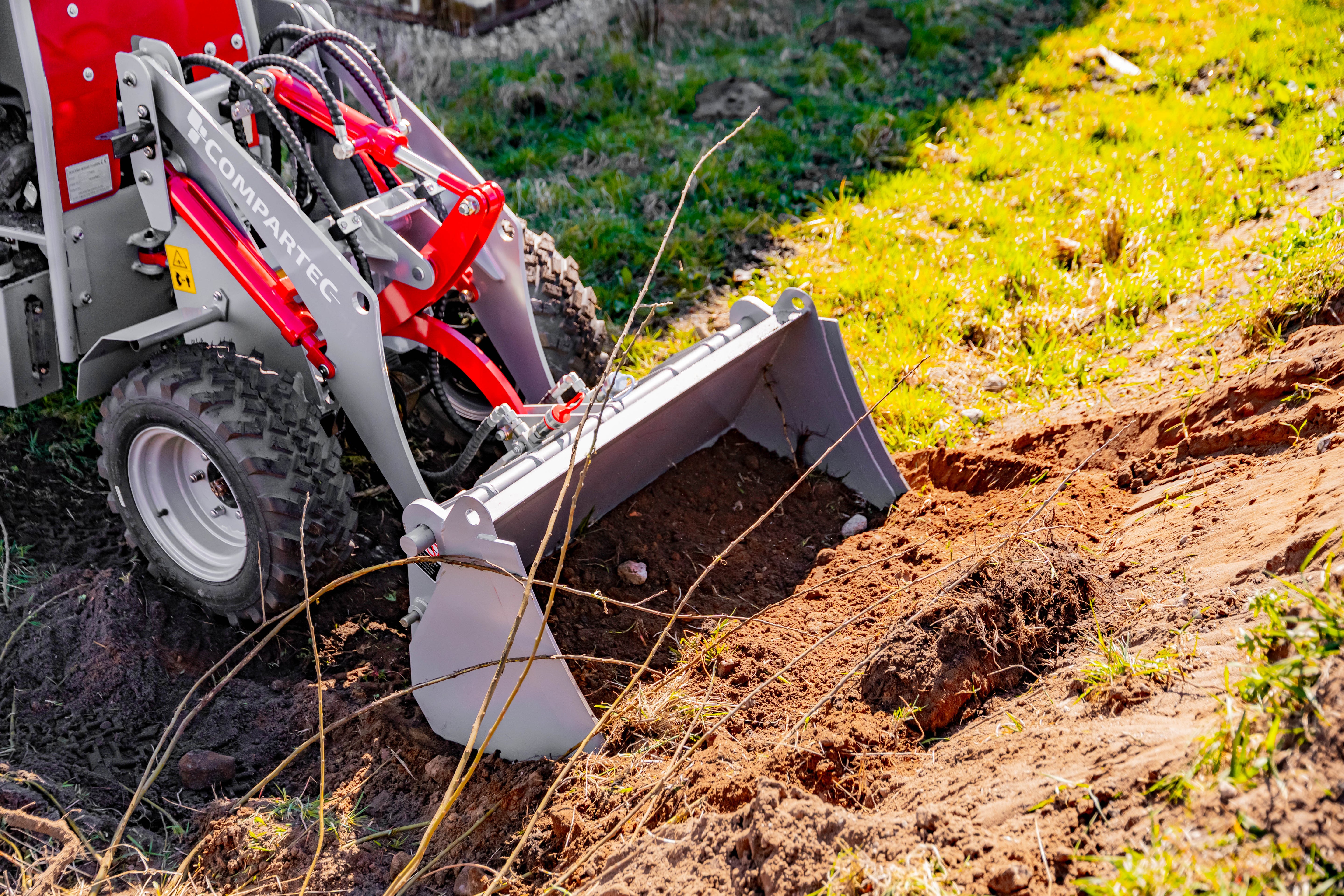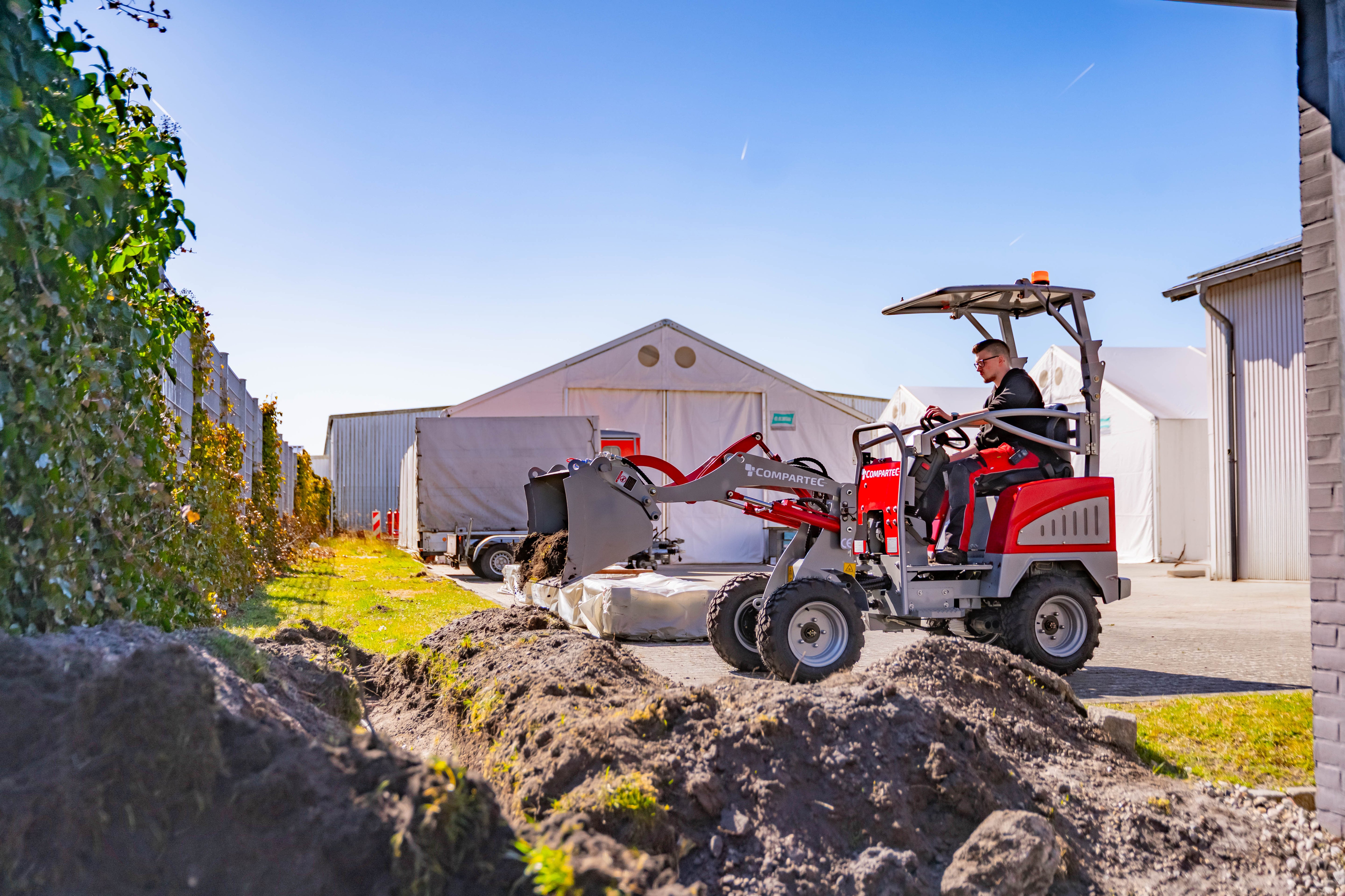Den robuste konstruktion og det kompakte design med en bredde på 1.050 mm gør det nemt at manøvrere i trange områder. Weidemaster er udstyret med et hurtigskiftesystem, der gør det muligt hurtigt at skifte mellem forskellige redskaber som skovle og pallegafler, hvilket øger maskinens alsidighed. Desuden sikrer de kraftige dæk (29*12.50-15) fremragende trækkraft på forskellige underlag.