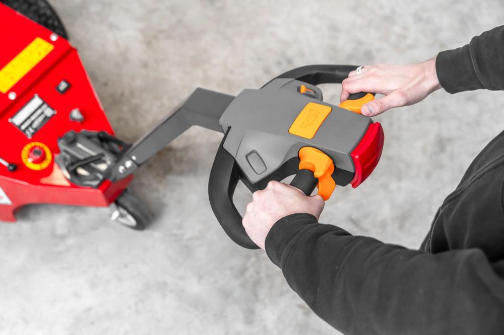 • Styresystem: Ergonomisk deichselhoved med nødstop og batteriindikator