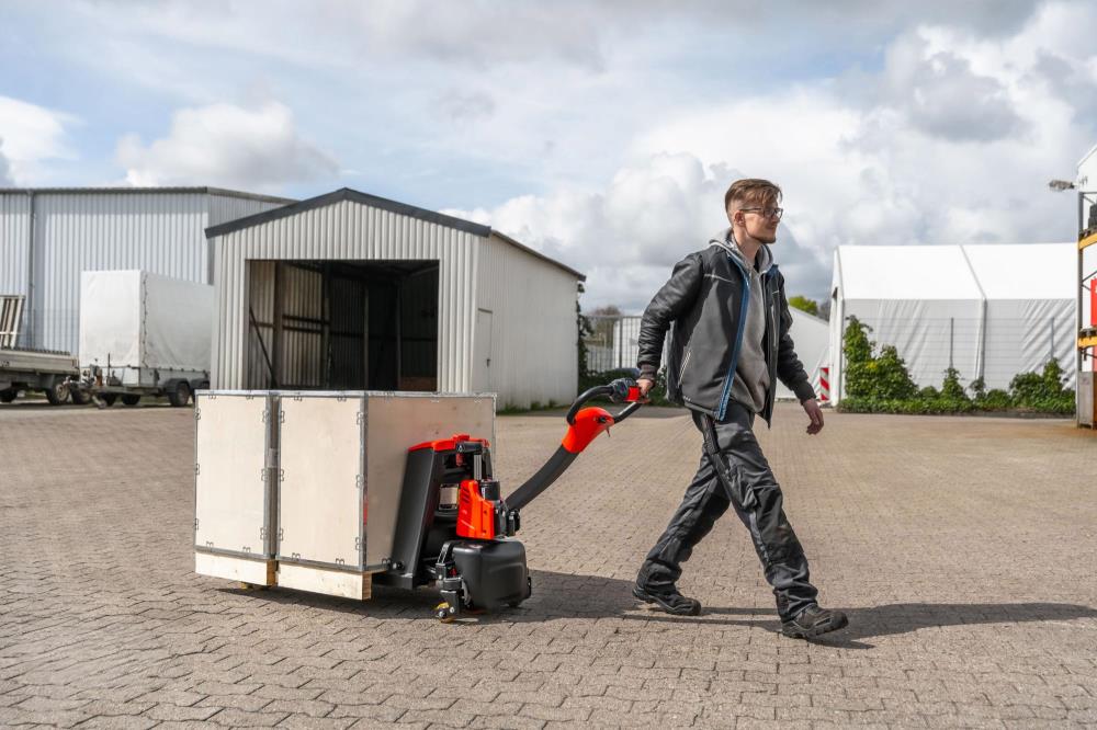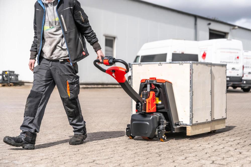Den fuldelektriske palleløfter "ForkLion Pro" fra COMPARTEC transporterer last op til 1.500 kg uden besvær og er ideel til logistik, industri og flerskiftsarbejde.