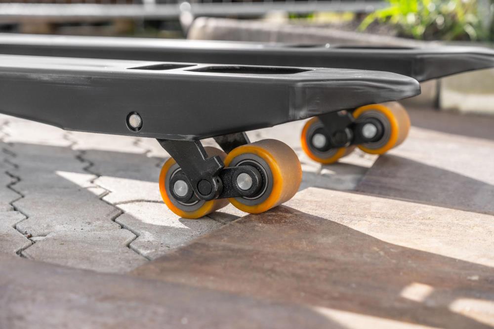 Dens kompakte og robuste konstruktion sikrer lang levetid, mens de integrerede støttehjul giver ekstra stabilitet – selv på ujævne underlag.