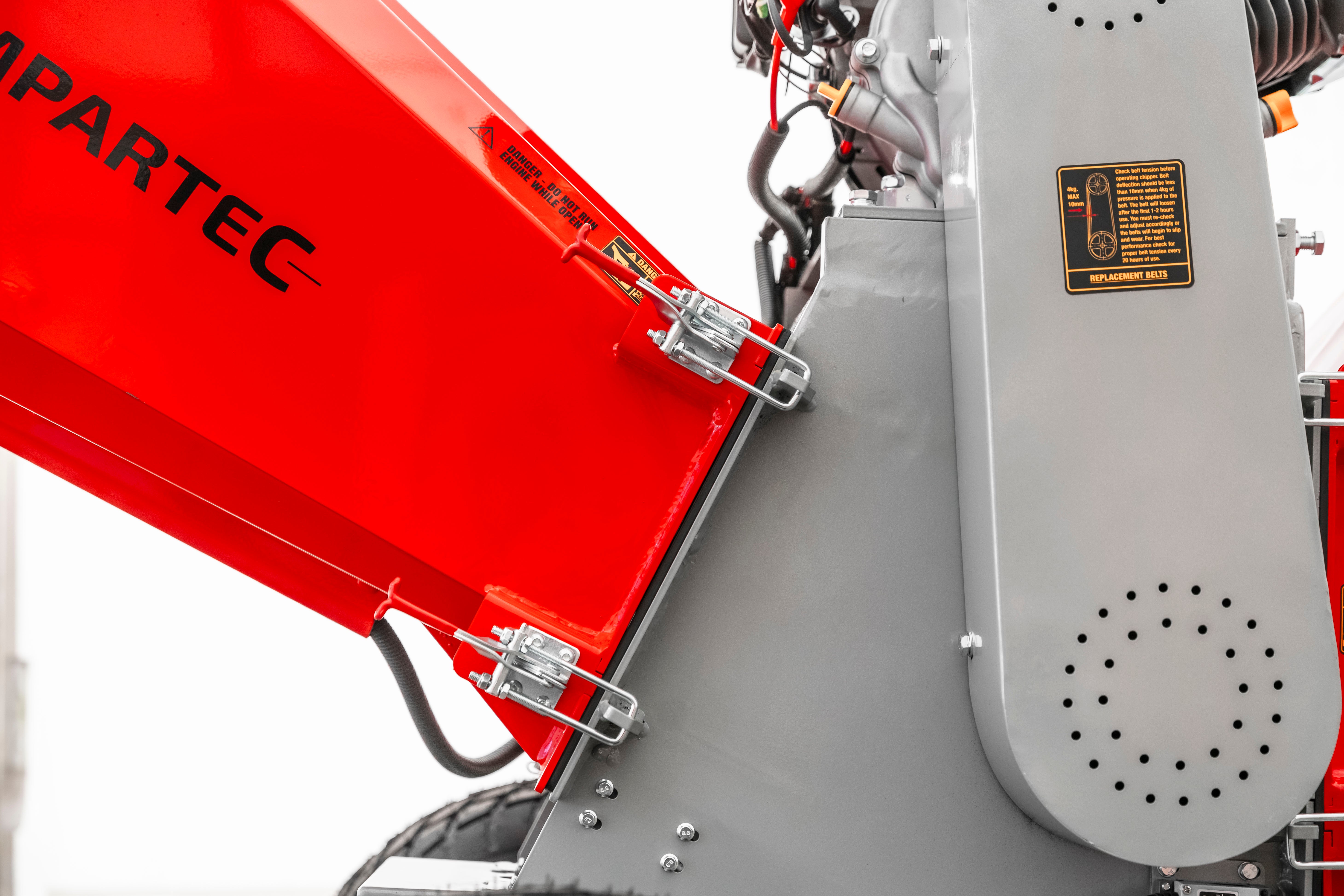 • Stor påfyldningstragt: Håndterer alt fra grene til mere omfangsrigt beskæringsmateriale.