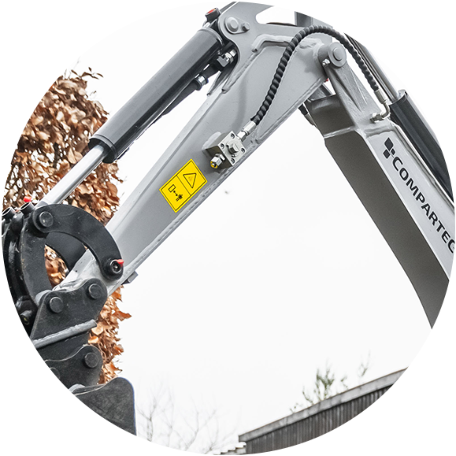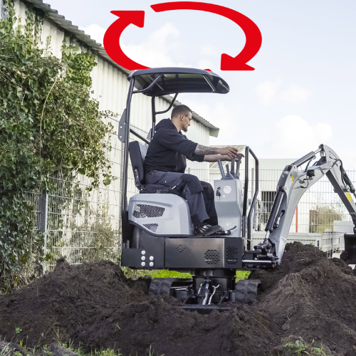 Med en drejearm på din minigraver er du mere fleksibel og kan komme tættere på fx husmuren.