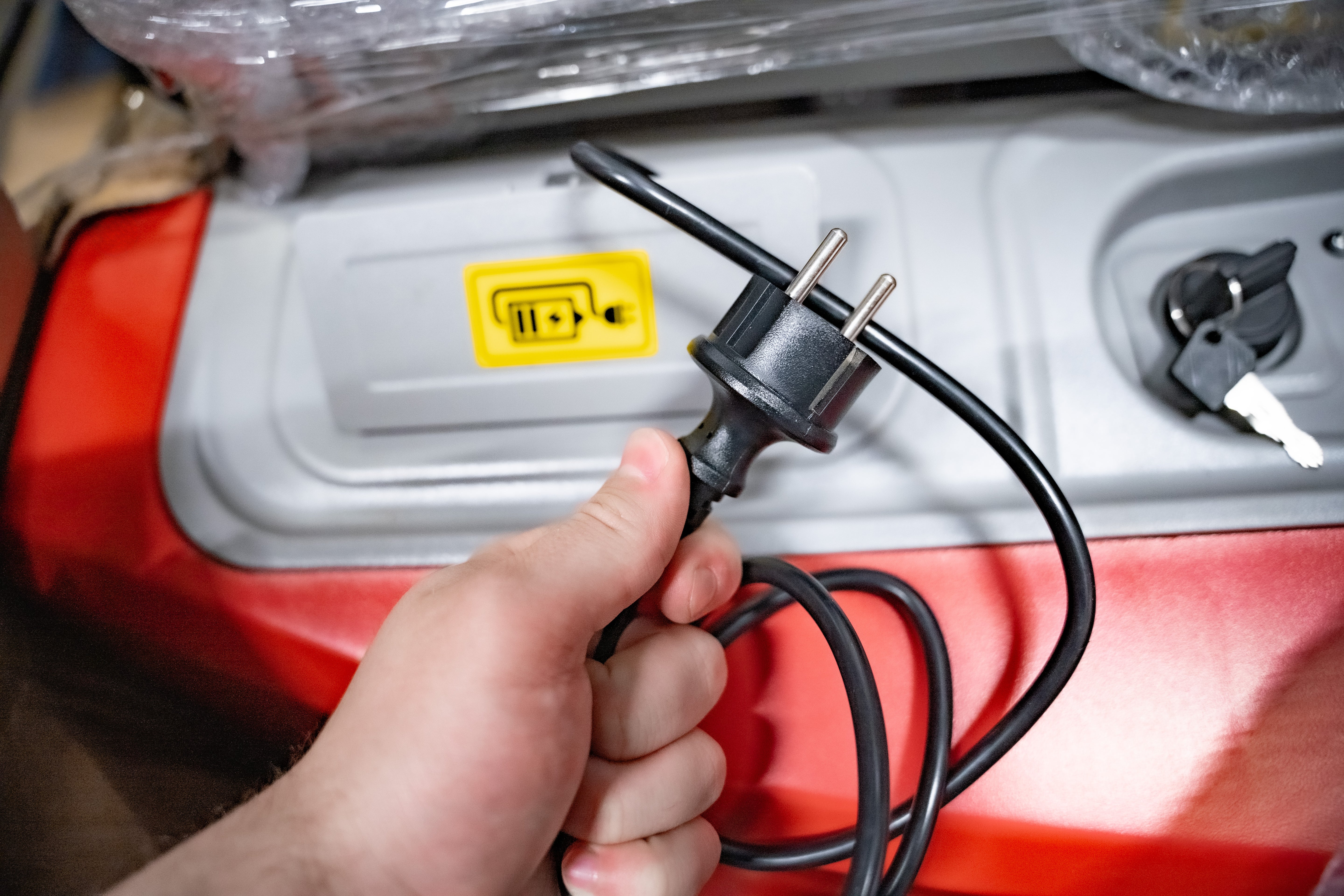 Den integrerede oplader kan hurtigt tilsluttes en almindelig stikkontakt.