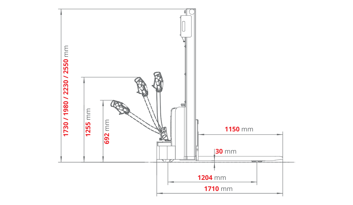 - Løftekapacitet: 1500 kg, løftehøjde 2500 / 3000 / 3500 / 4000 mm