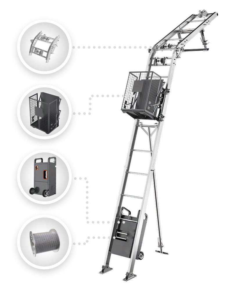 Denne lift er ideel til tagarbejde, facadeinstallationer og andre byggeprojekter, hvor materialer skal transporteres til højere niveauer. Den robuste konstruktion og brugervenlige design gør den til et uundværligt værktøj for professionelle håndværkere og entreprenører.