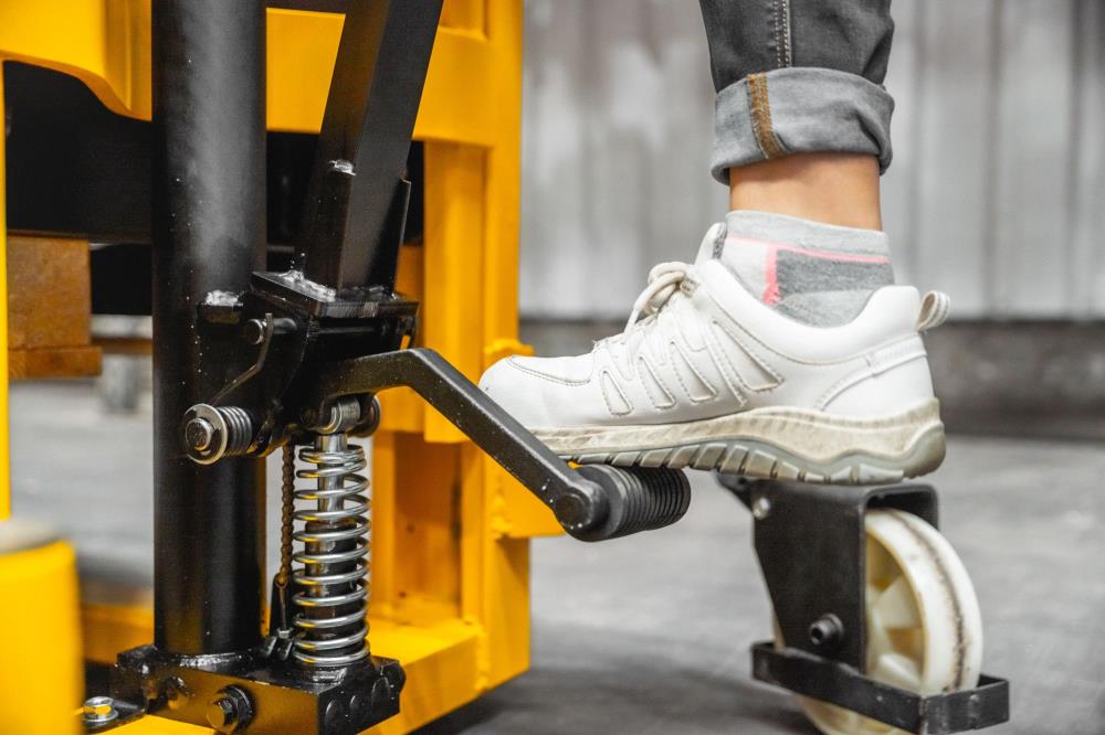 - Manuel betjening: Løft og sænkning sker via hydraulik med hånd- og fodbetjening, hvilket giver præcis kontrol over lasten.