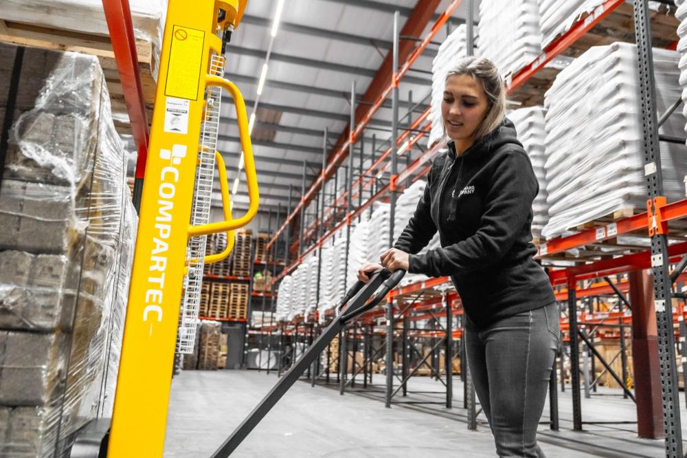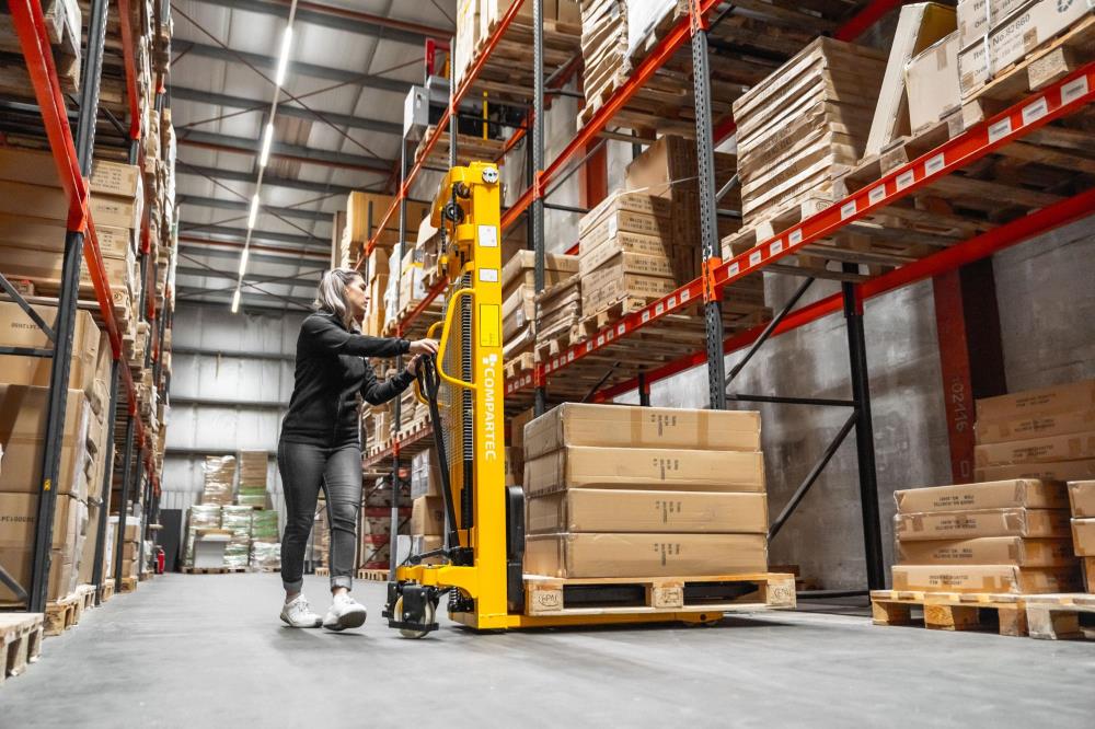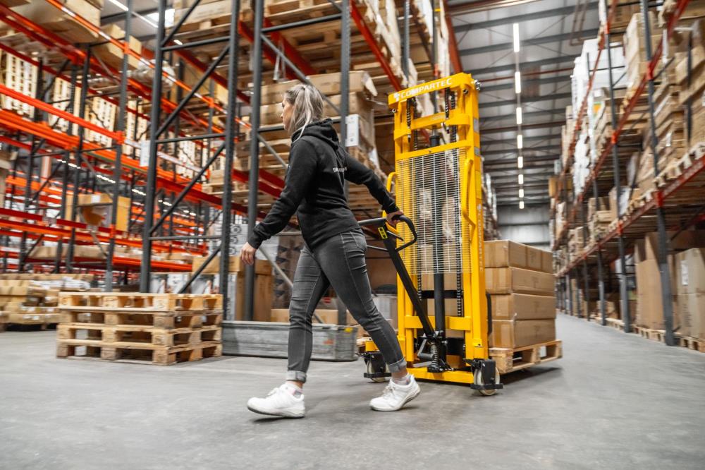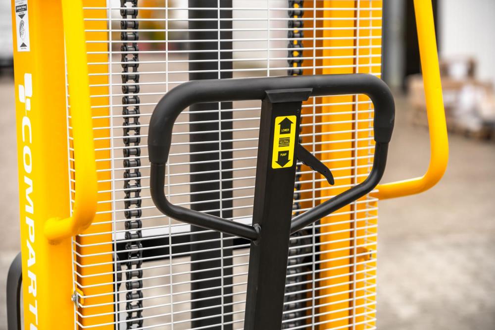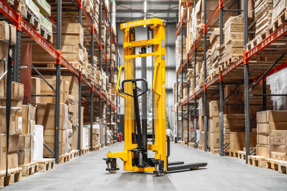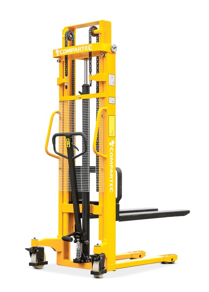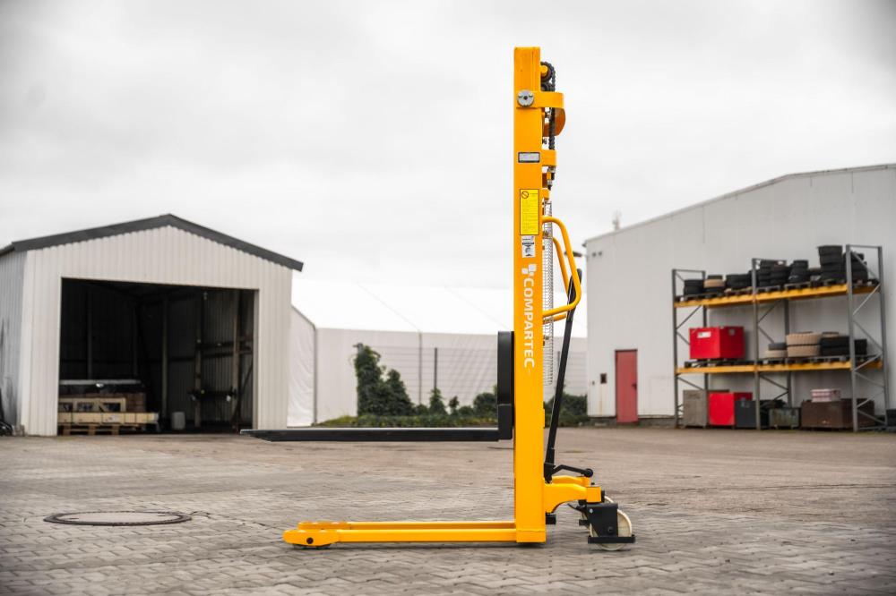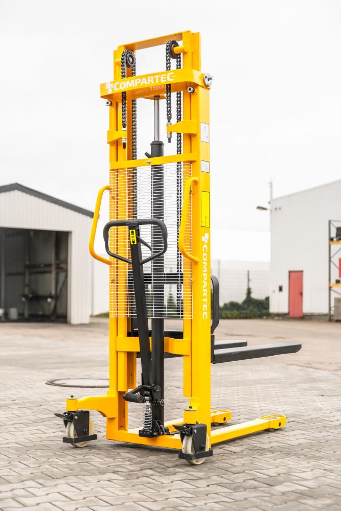 Den COMPARTEC BASIC manuelle stabler er en pålidelig og økonomisk løsning til håndtering af palleterede varer i lager- og produktionsmiljøer. Med en løftekapacitet på op til 1.500 kg og en maksimal løftehøjde på 3.000 mm kan denne stabler udføre mange af de samme opgaver som en gaffeltruck, men uden behov for et særligt kørekort.